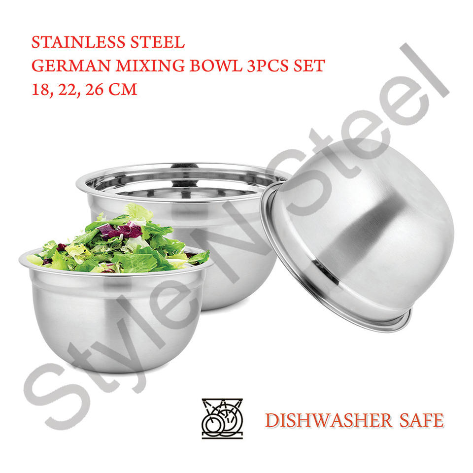 3pcs Set Stainless Steel Salad Bowl Multipurpose Kitchen Cooking Space-Saving Storage Mixing German Bowl
