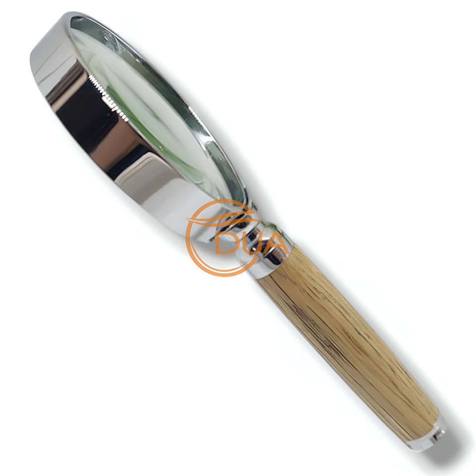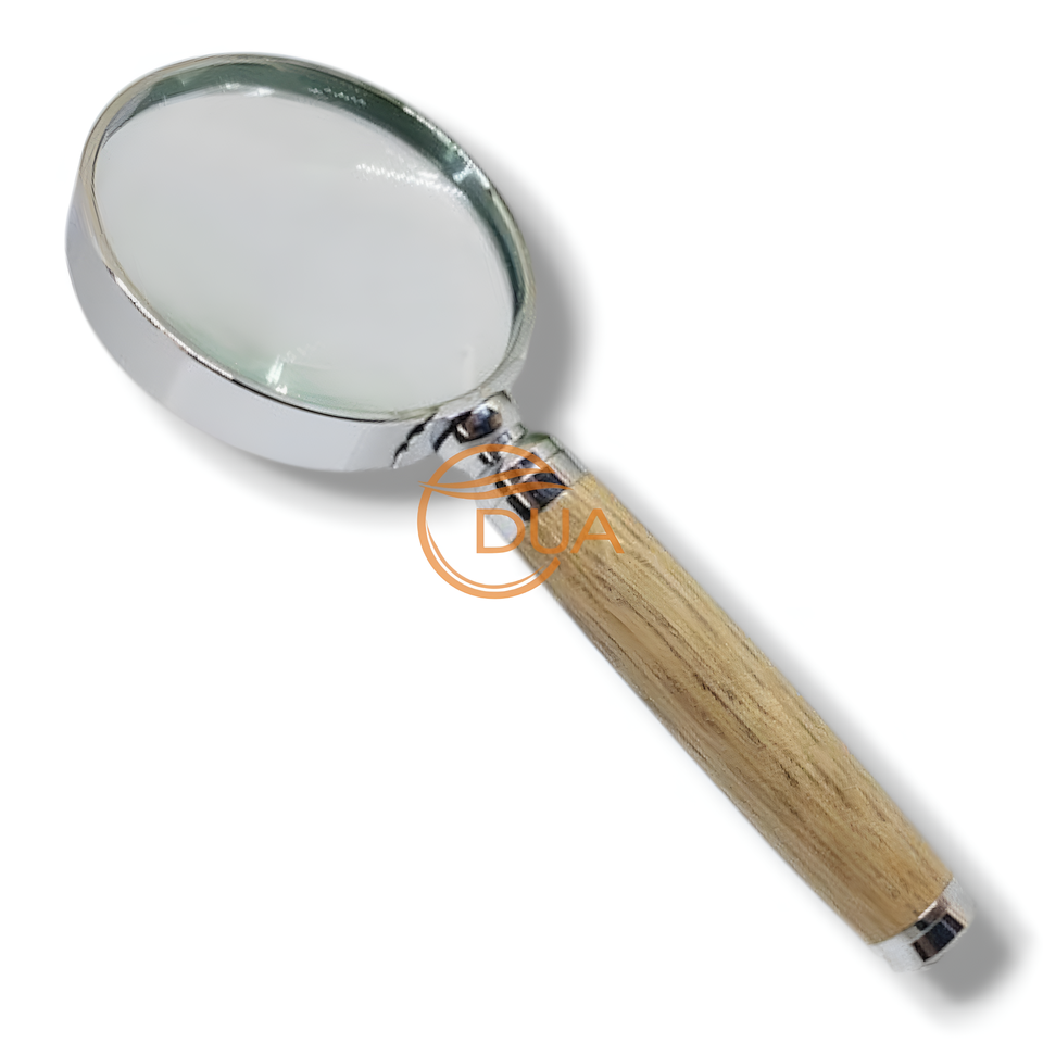 3x magnifying glass with a wooden handle, used for reading fine print and examining details