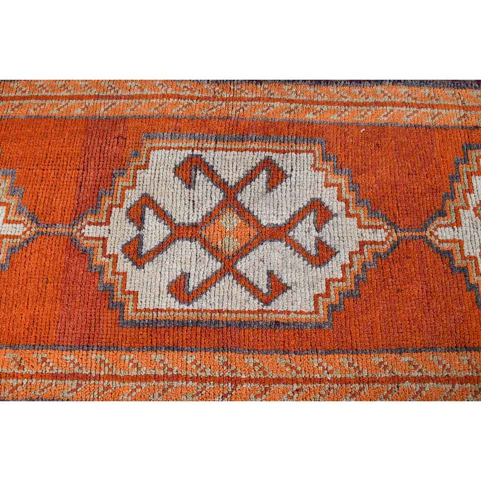 3x10.2 ft Turkish Runner Rug, Orange White Vintage Ombr Wool Rug