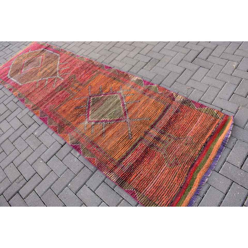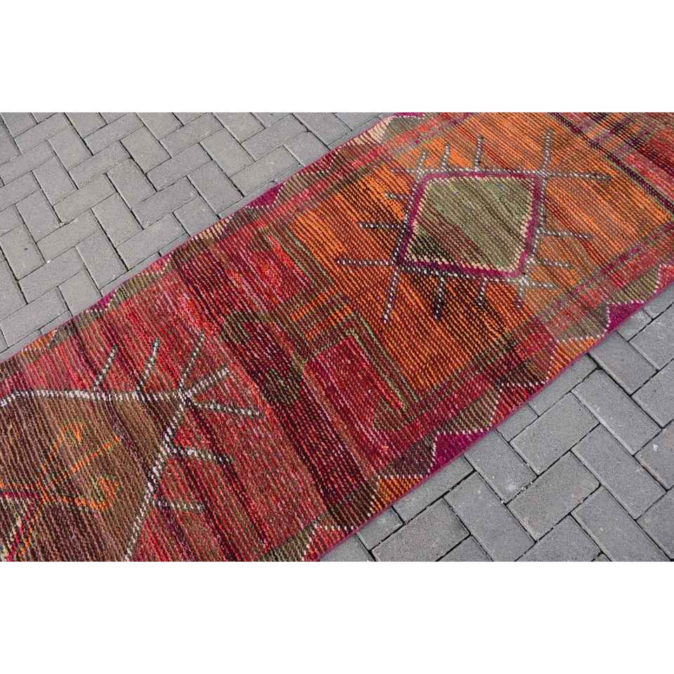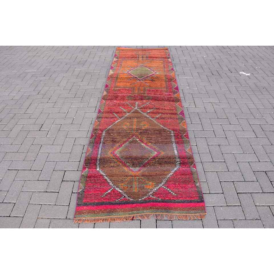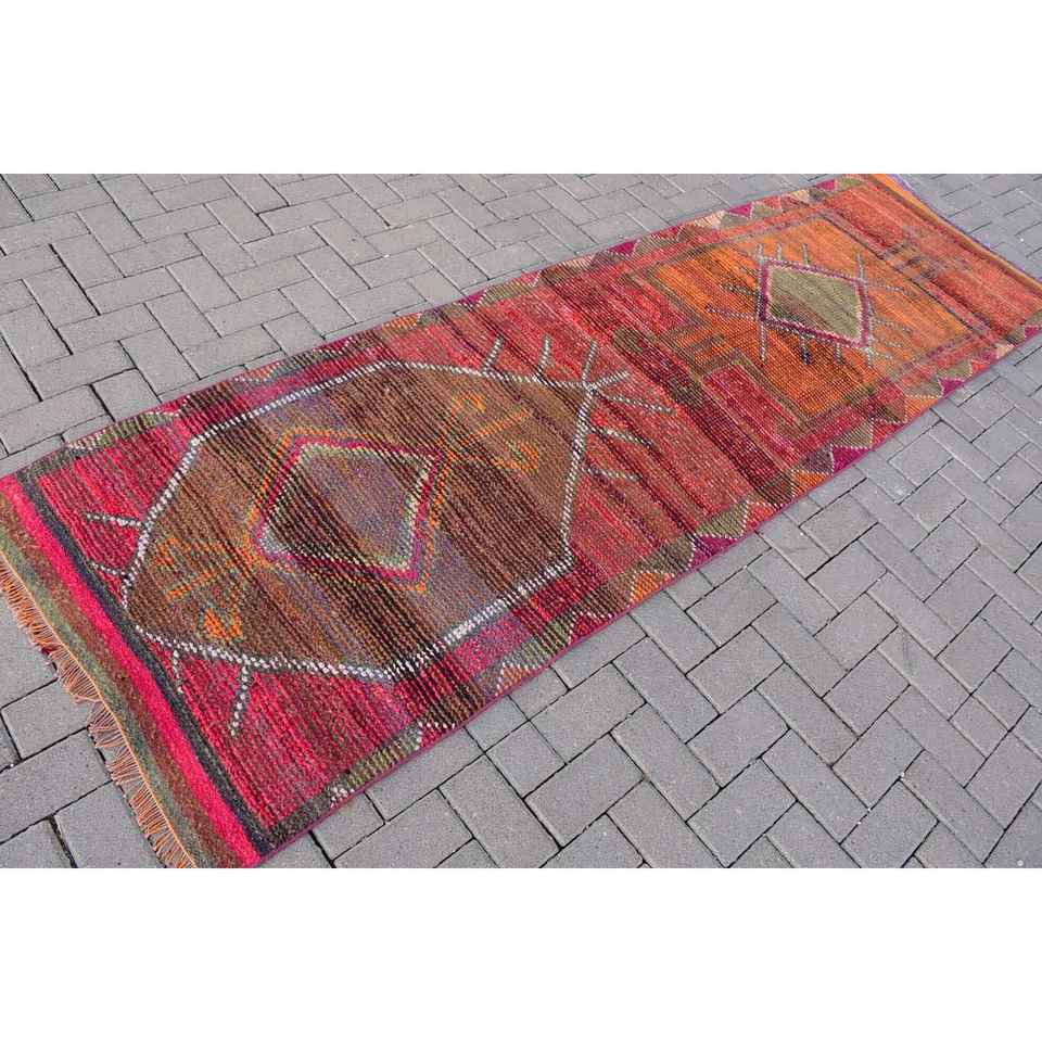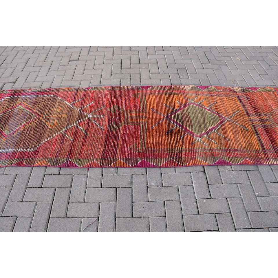 3x10.3 ft Turkish Rug, Runner Vintage Rug, Red Check Rug