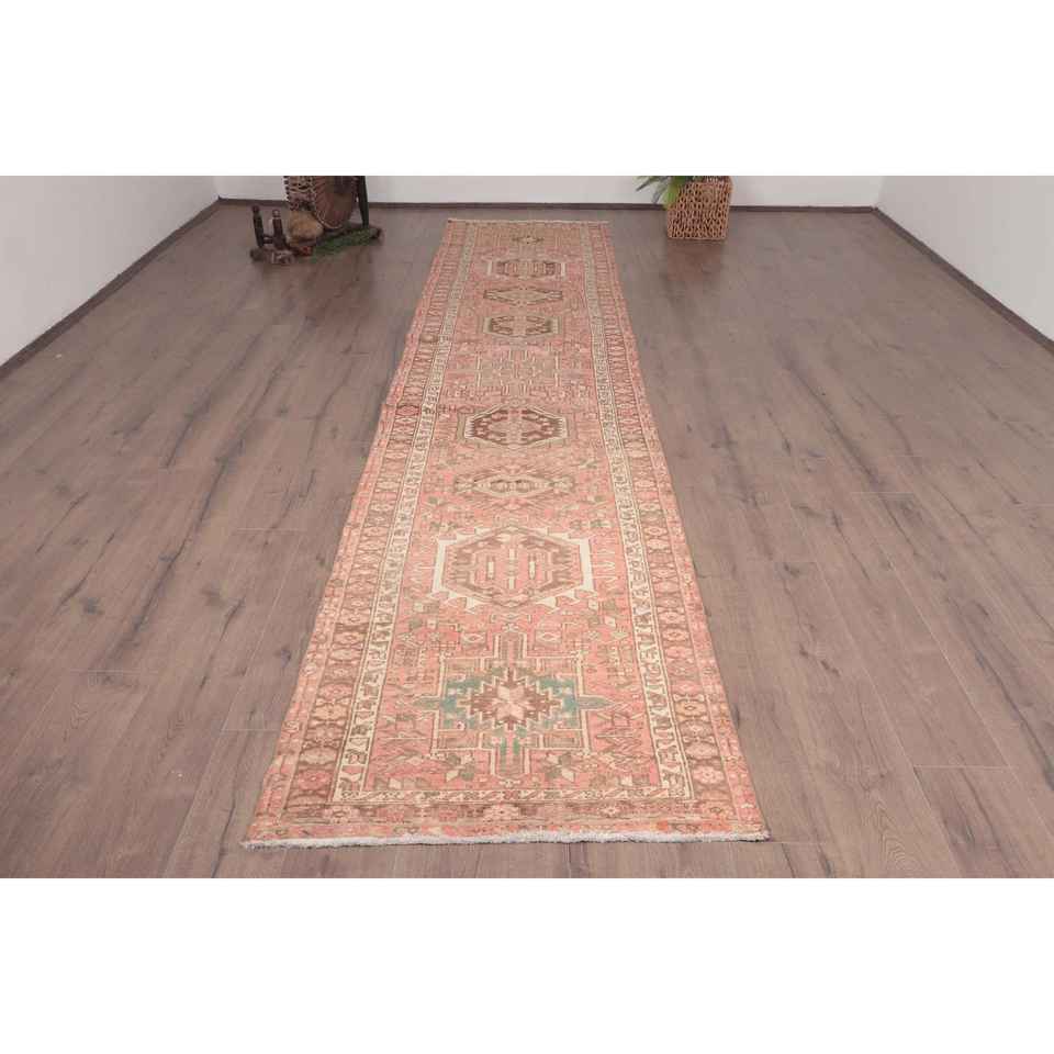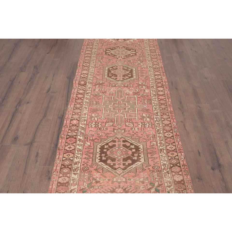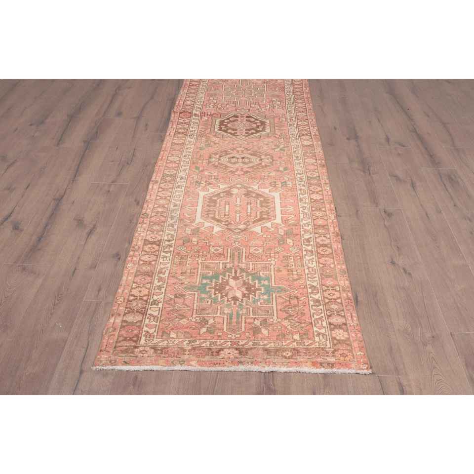 3x13.5 ft Turkish Runner Rug, Red Brown Vintage Bordered Wool Rug