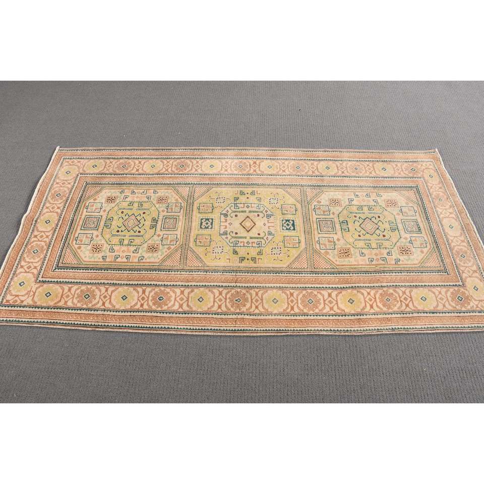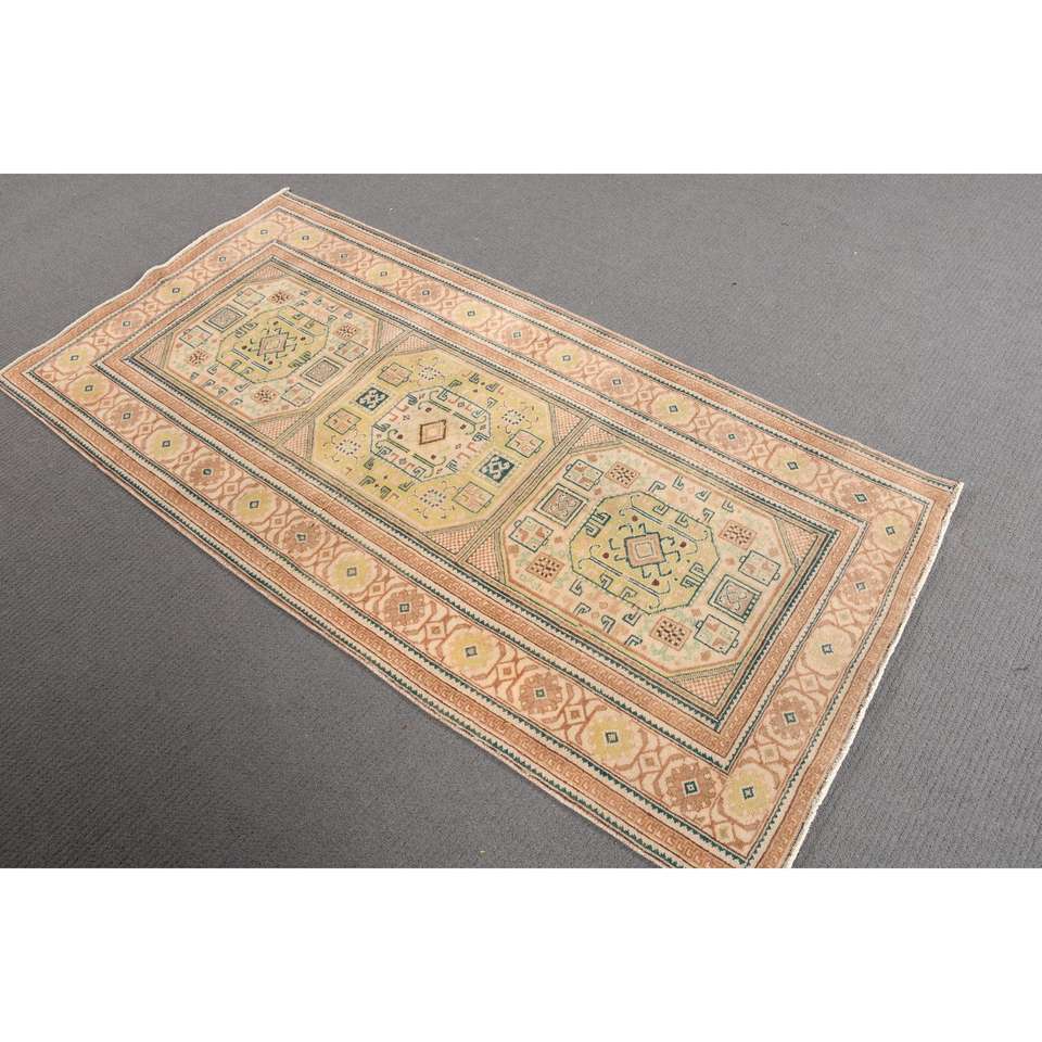 3x6 ft Rug, Turkish Vintage Rug, Brown Green Ombr Wool Rug