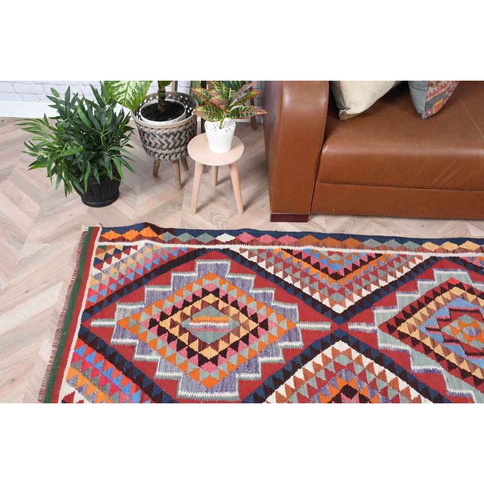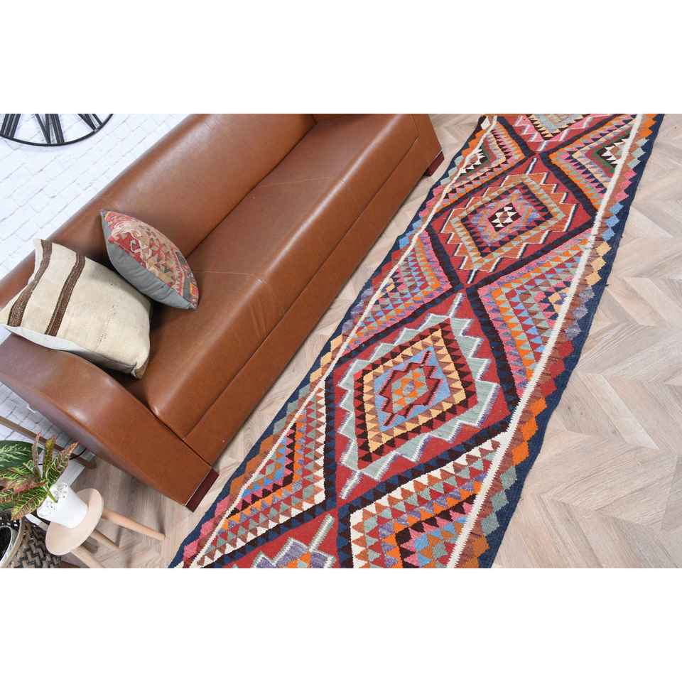3x9.8 ft Turkish Rug, Red Floral Vintage Wool Rug