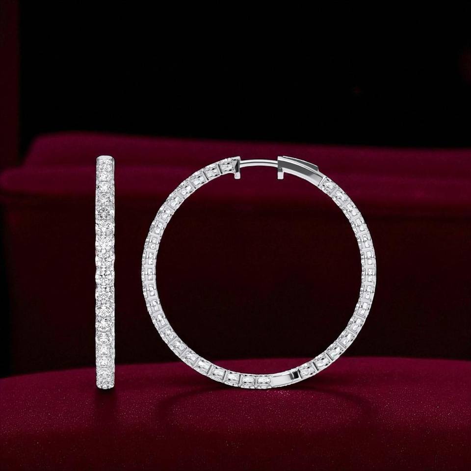 4.00 CT F-G/VS Round Cut Lab Grown Diamond Prong Set Classic Yellow/Rose/W White Gold Large Hoop Earrings for Unisex