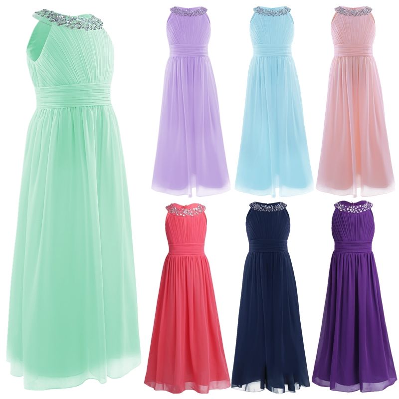 4-16 Girls Chiffon Sleeveless Flower Girl Dress Princess Pageant Wedding Bridesmaid Birthday Party Dress Holiday Photo