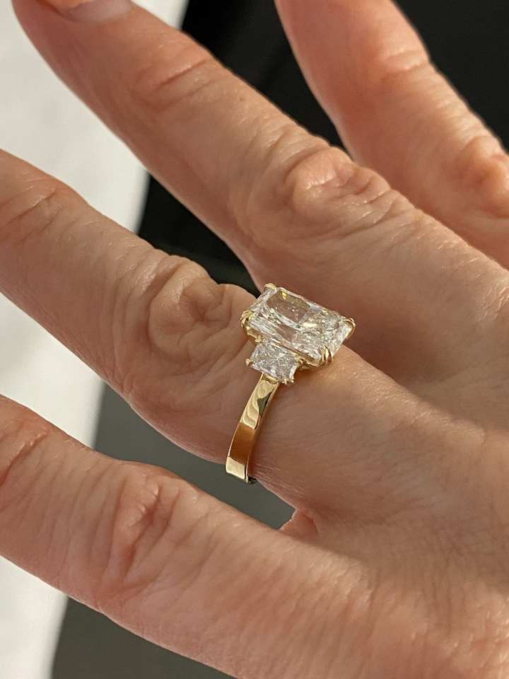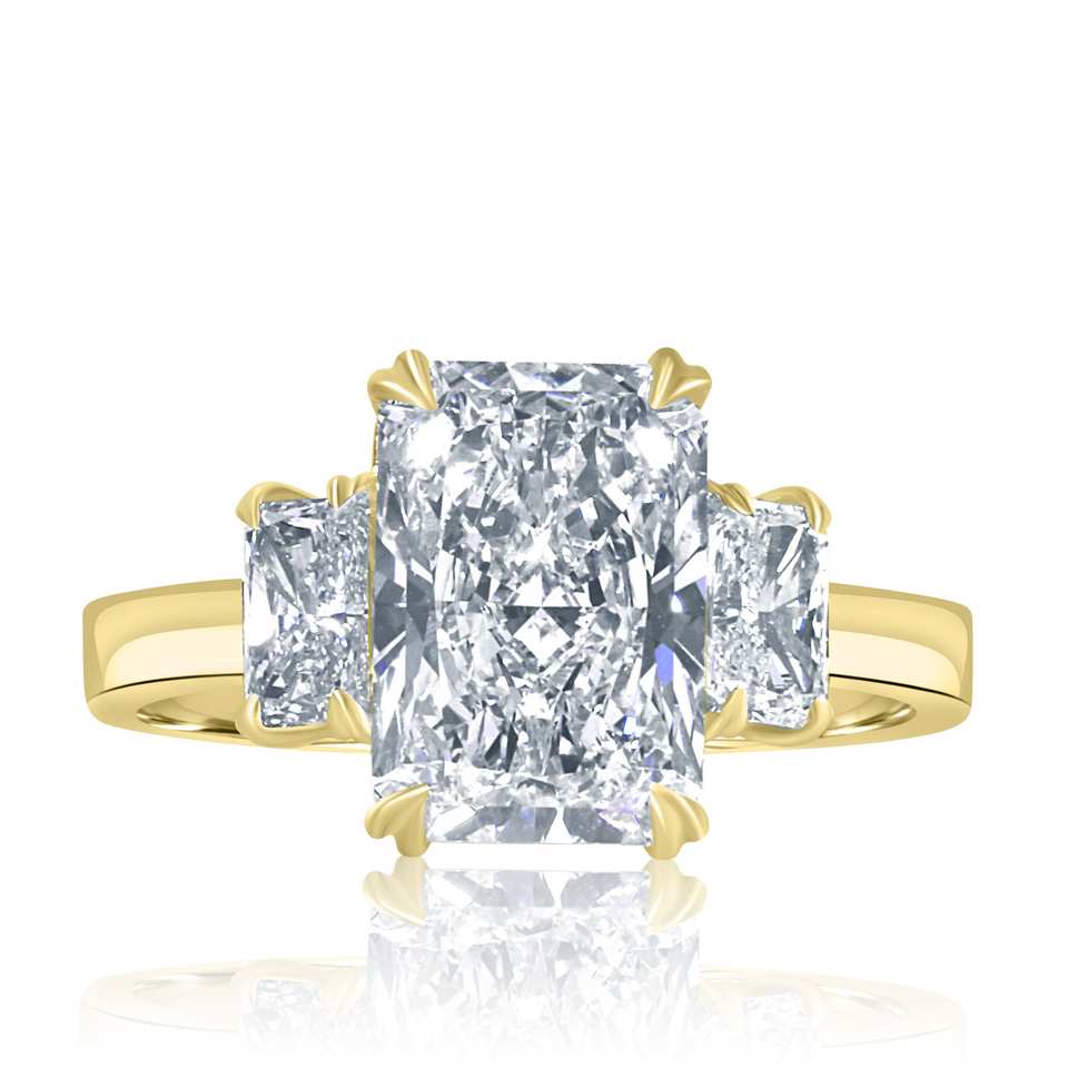 4.17Ctw 3 Stone E-VS1 Radiant Cut Lab Grown Diamond Engagement Ring IGI Certified Past Present Future Ring 14k Yellow Gold, Gift