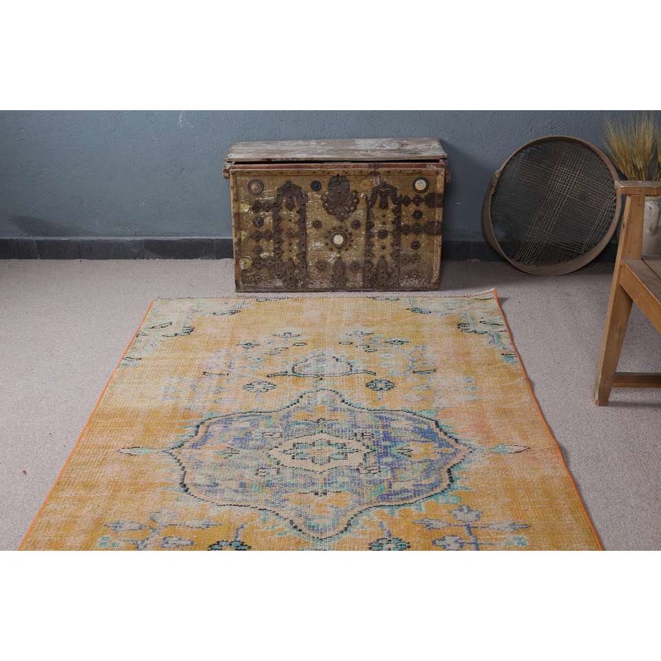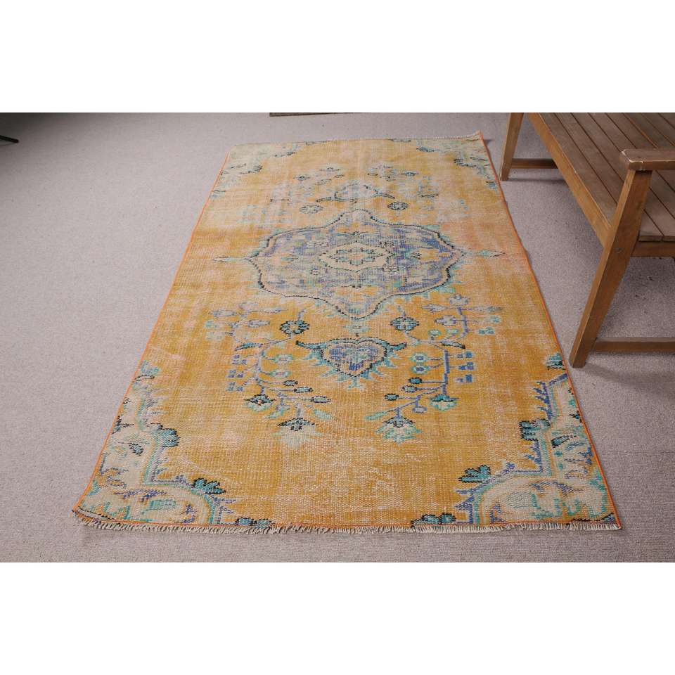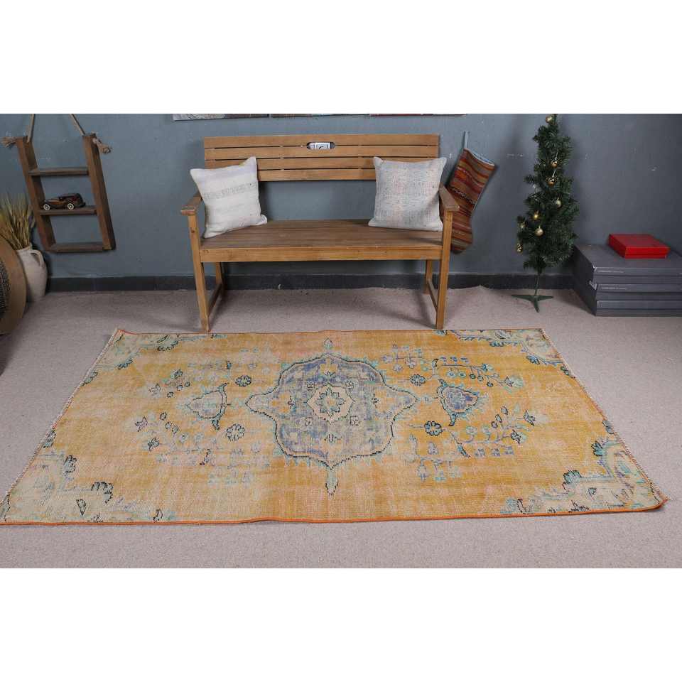 4.1x7.2 ft Turkish Rug, Rug, Yellow Oriental Rug Wool