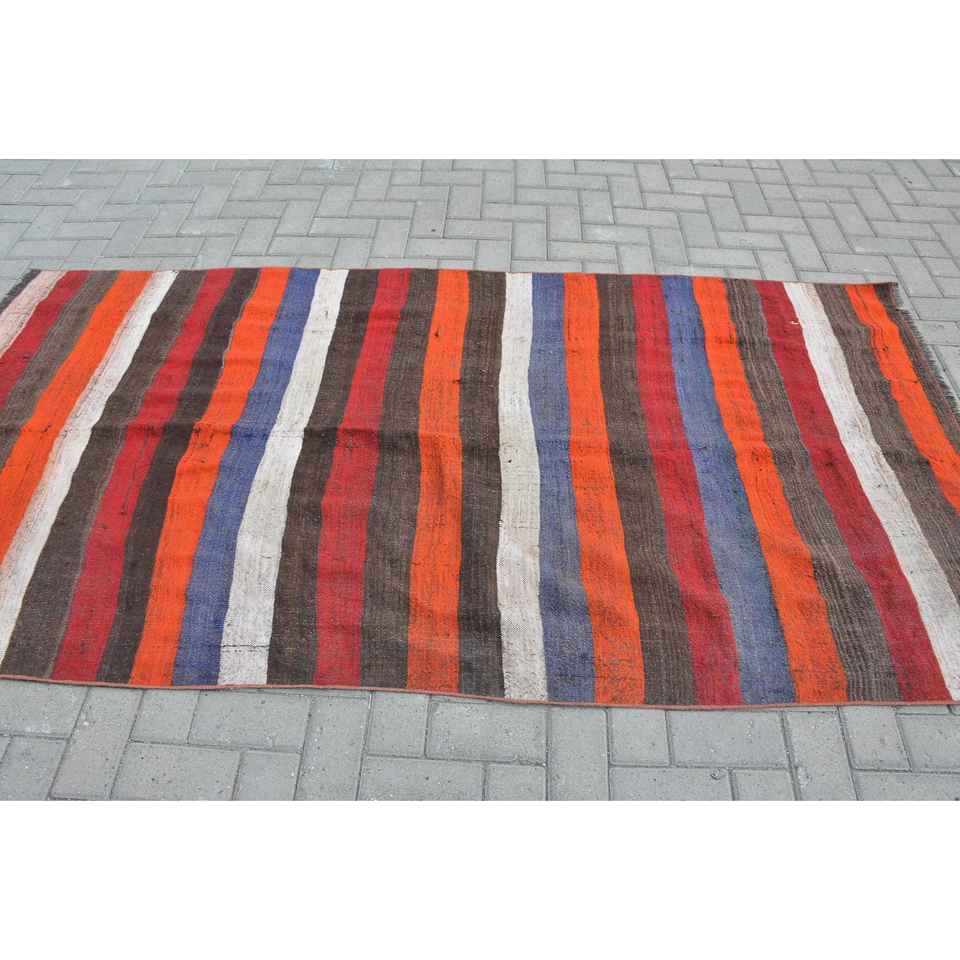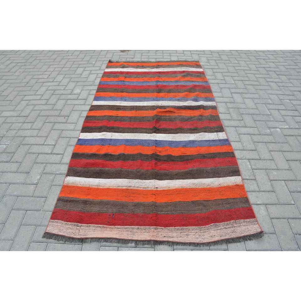 4.1x8.3 ft Rug, Turkish Kilim Rug, Vintage Red Wool Abstract Rug