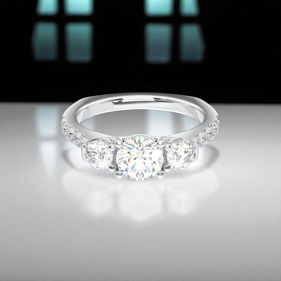 4.20 Carat F-G/VS Quality Lab Grown Round Shape Diamond Prong Set Engagement Ring Made in Sterling Silver For Women