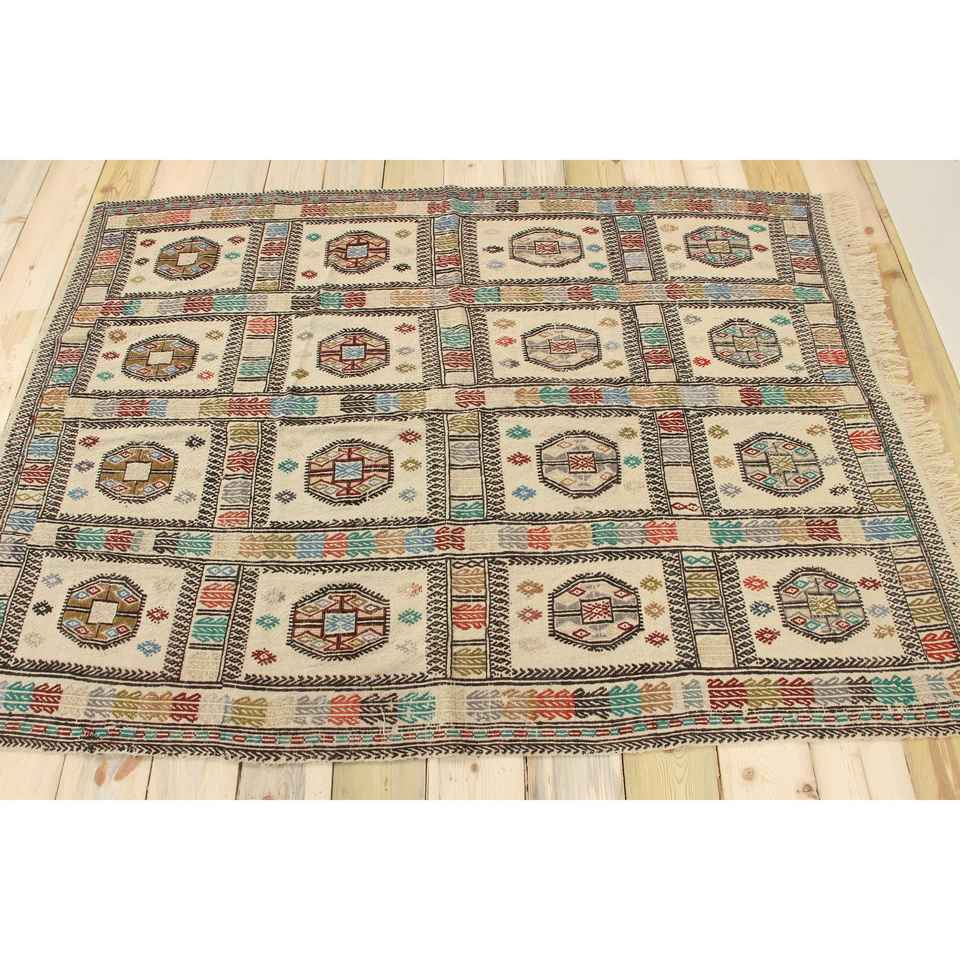 4.2x5.7 ft Rug, Accent Vintage Rug, Brown Floral Rug