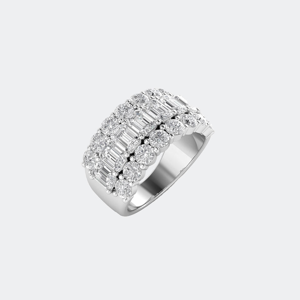 4.30CTW Emerald Round Mixed Diamond Triple Row Statement Ring 14k Gold Lab Grown D Color VVS Wide Band for Women