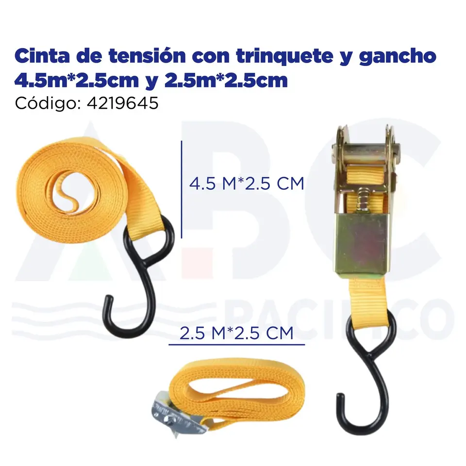 4.5m*2.5cm and 2.5m*2.5cm Ratchet and Hook Tension Strap Cargo Control Accessories