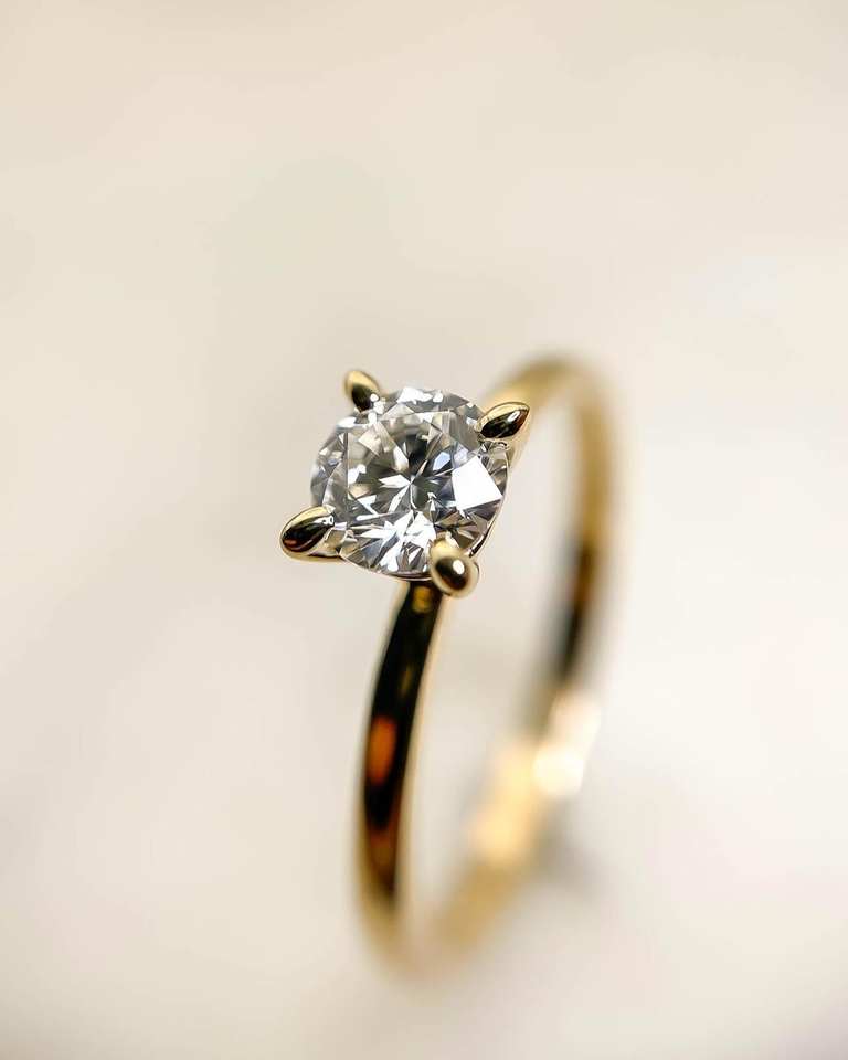 4.5mm Round Cut White CZ Solitaire Engagement Ring | Minimalist Gold Band Women Wedding Ring | Dainty Anniversary Jewelry