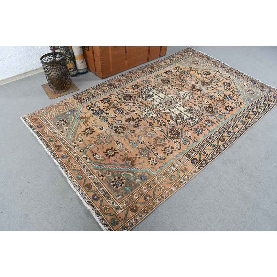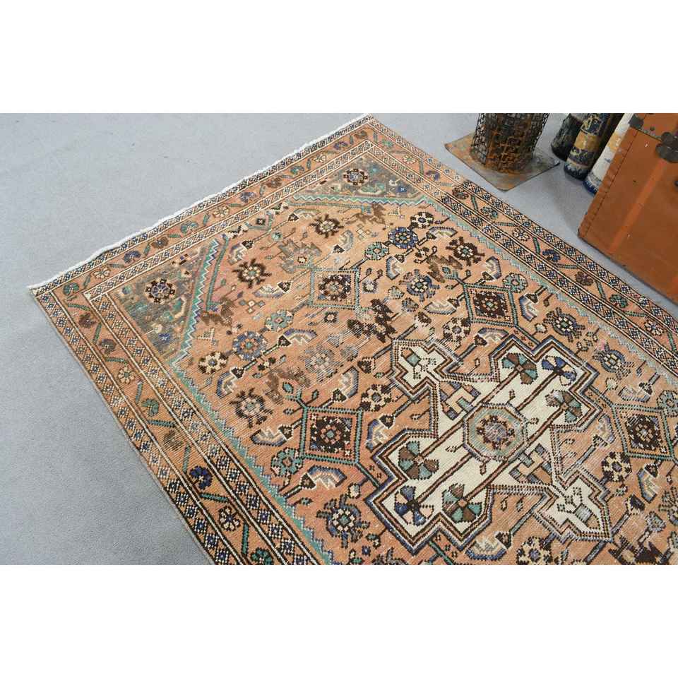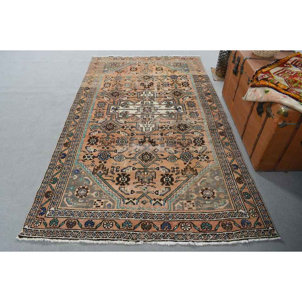 4.5x7.5 ft Turkish Rug, Vintage Area Rug, Brown Blue Patchwork Rug