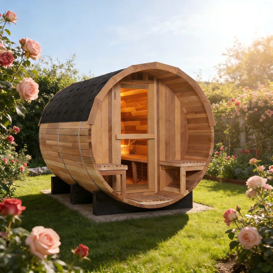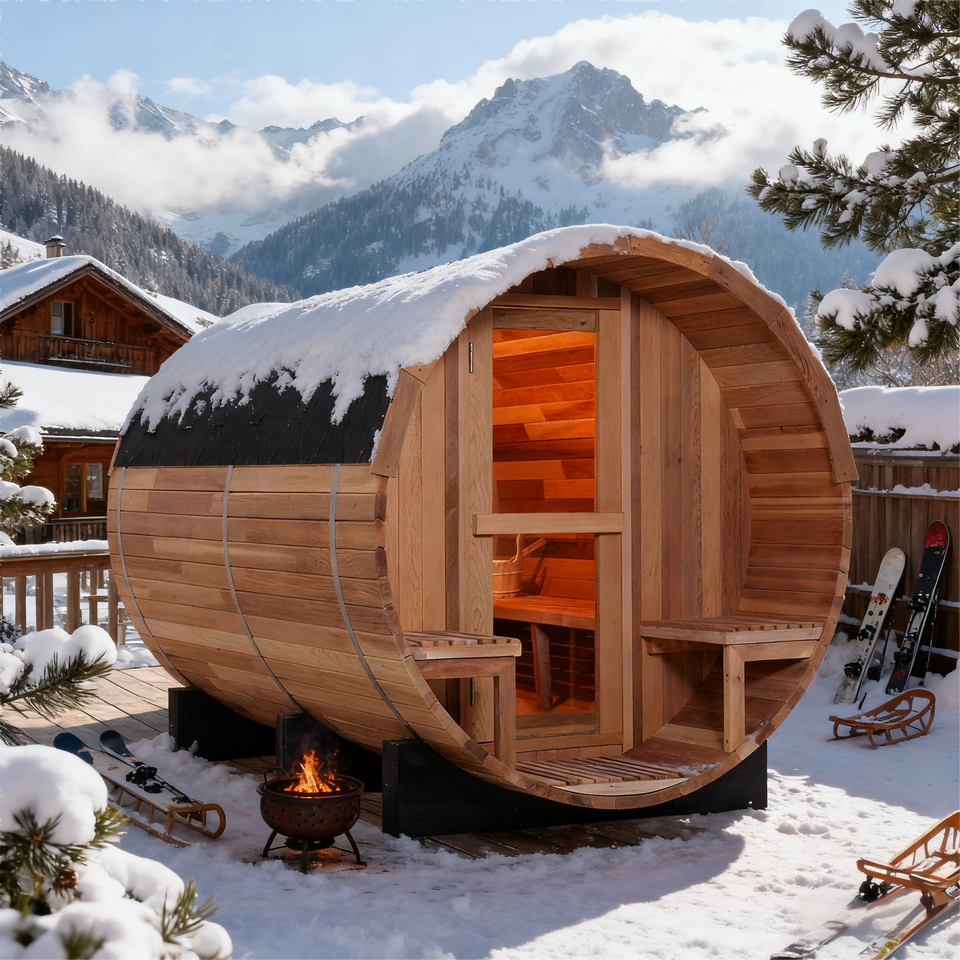 4-6 Person Barrel Sauna Outdoor, Patchwork Red Cedar Traditional Steam Barrel Sauna
