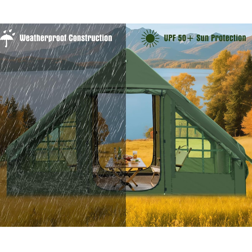 4-6 Person Inflatable Camping Tent, Air Glamping Tent with Pump, Waterproof Blow Up Tent for Outdoor, 4 Season, Easy Setup