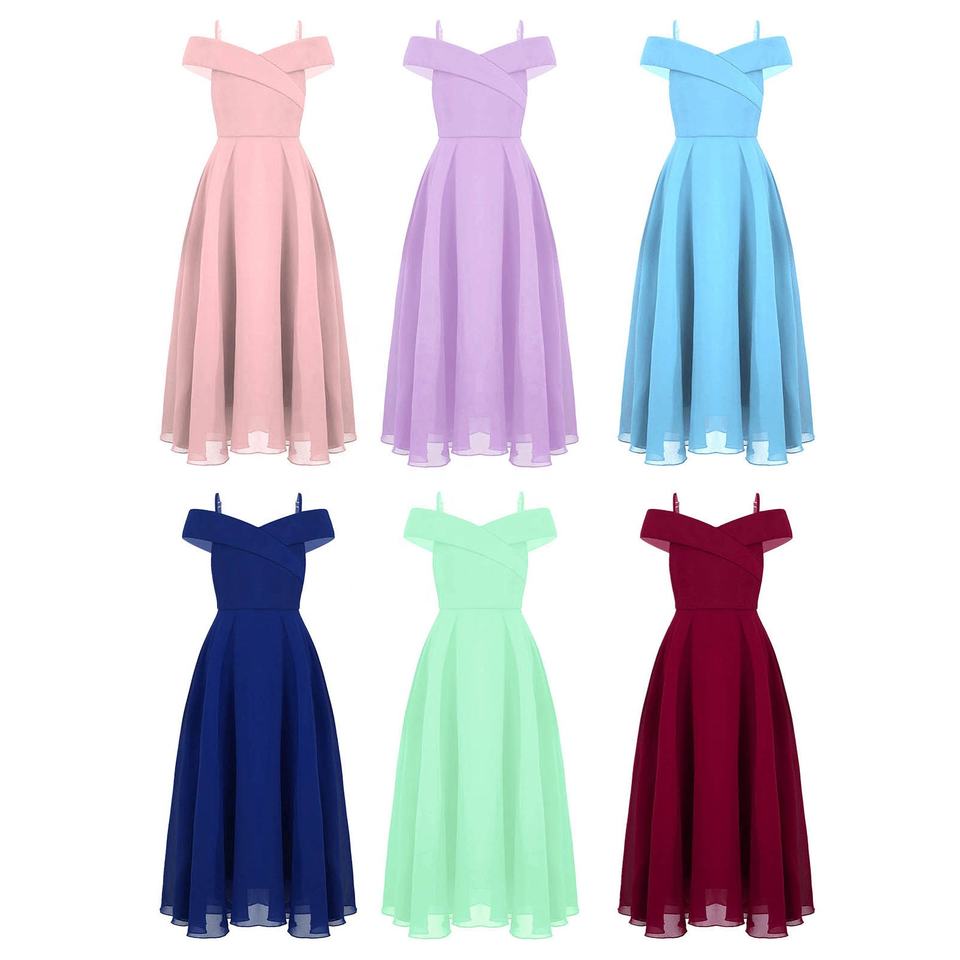 4 7 12 16 Years Old Girls Wedding Children Kids Birthday Elegant Chiffon Party Dress Off Shoulder Dresses for Girls