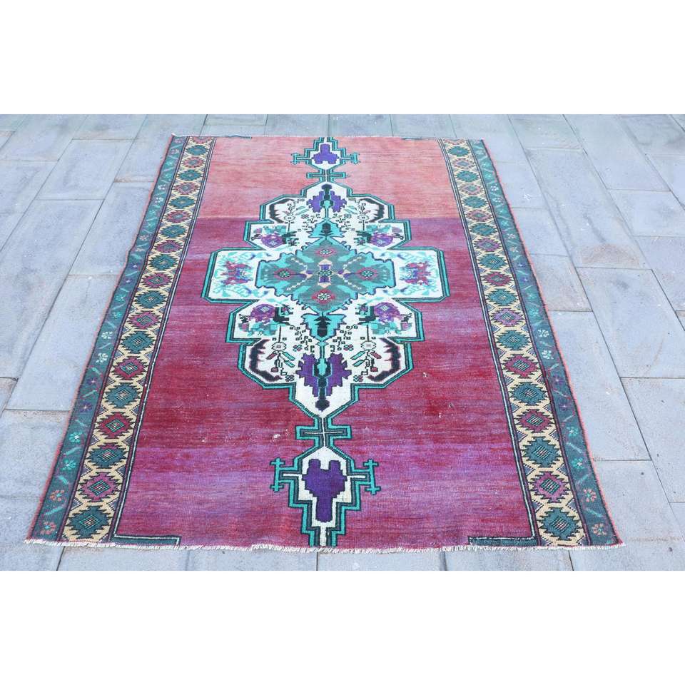 4.7x6.3 ft Rug, Turkish Vintage Rug, Red Blue Southwestern Wool Rug