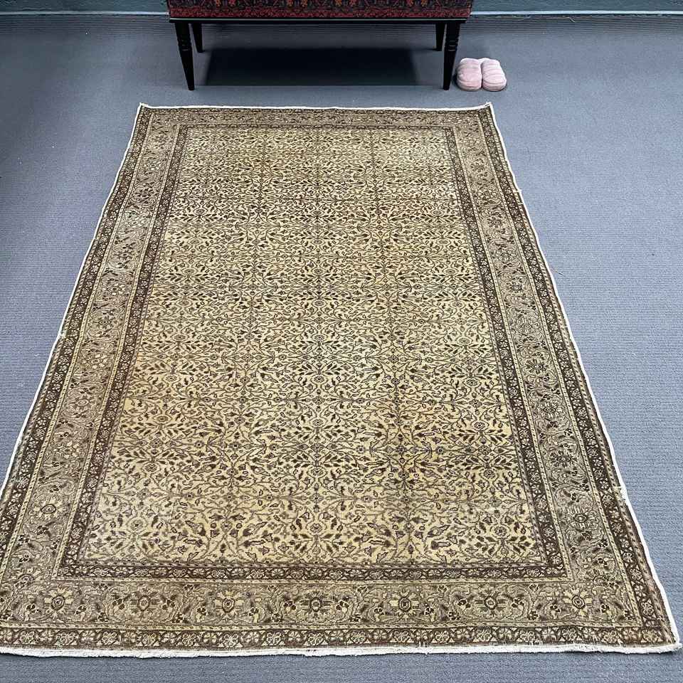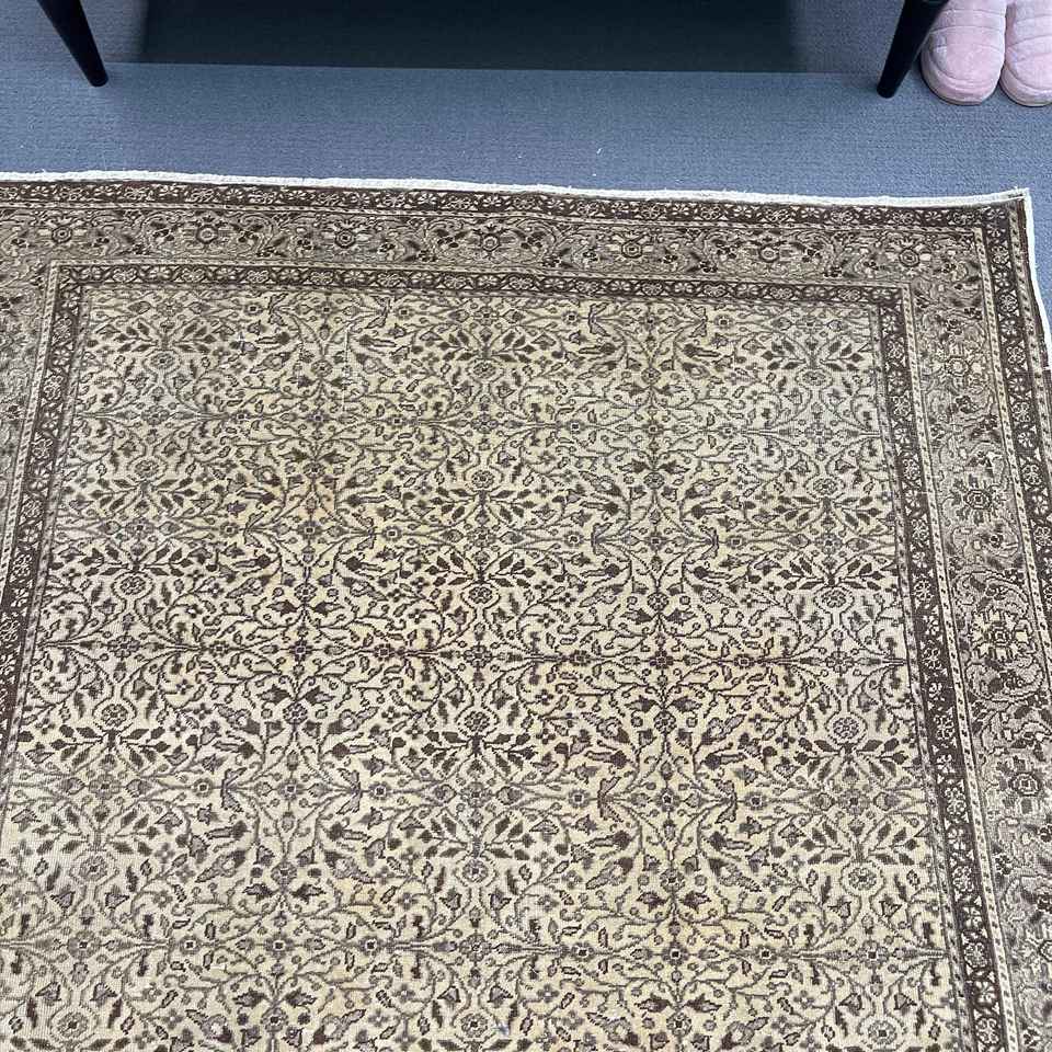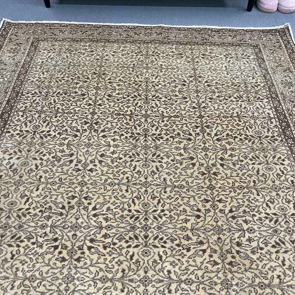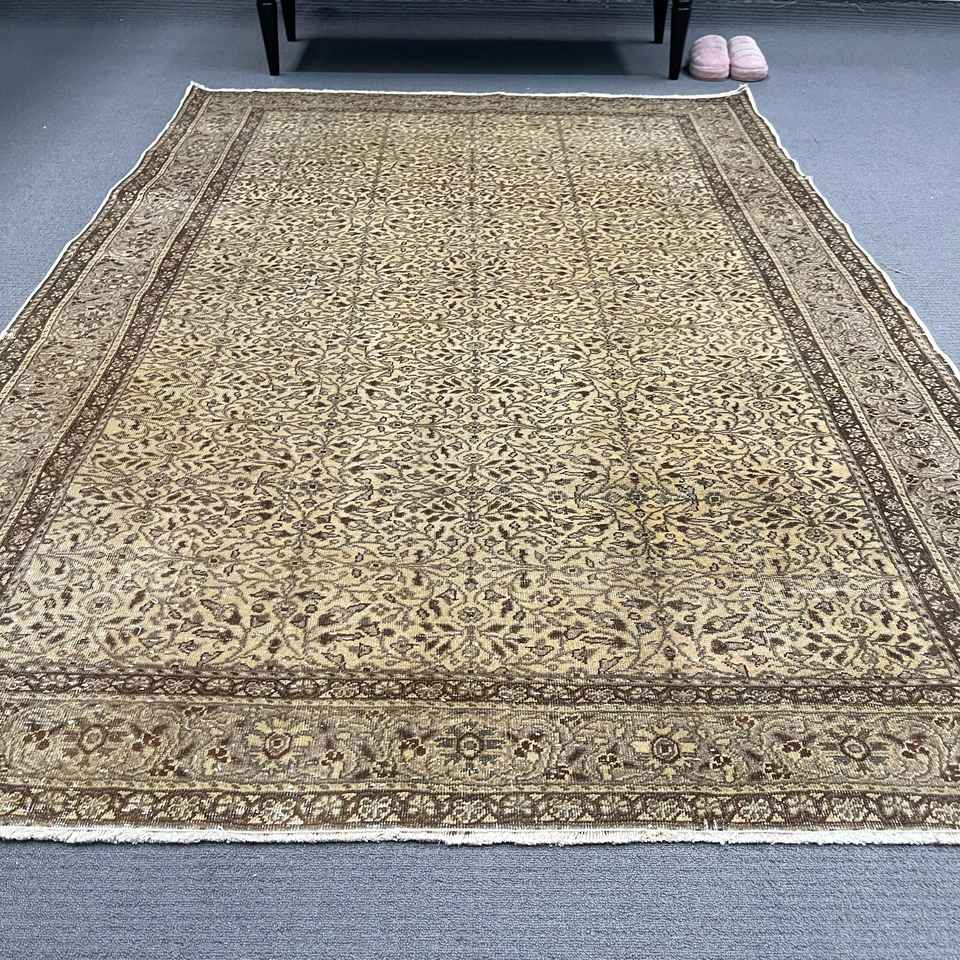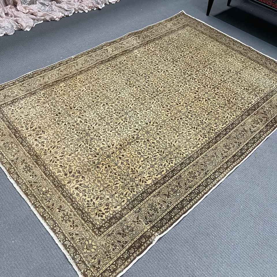 4.9x7.2 ft Turkish Rug, Vintage Area Rug, Brown Beige Solid Wool Rug