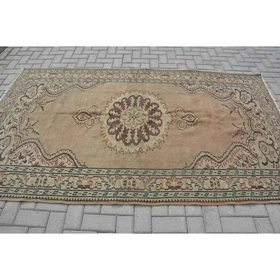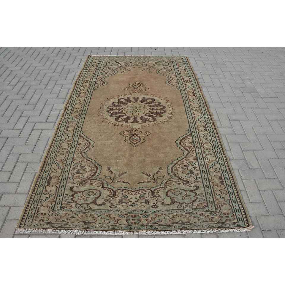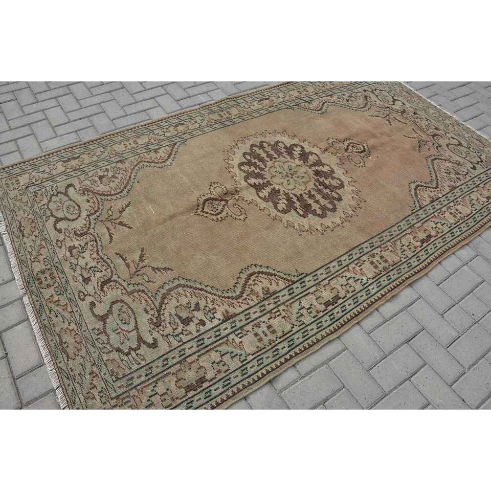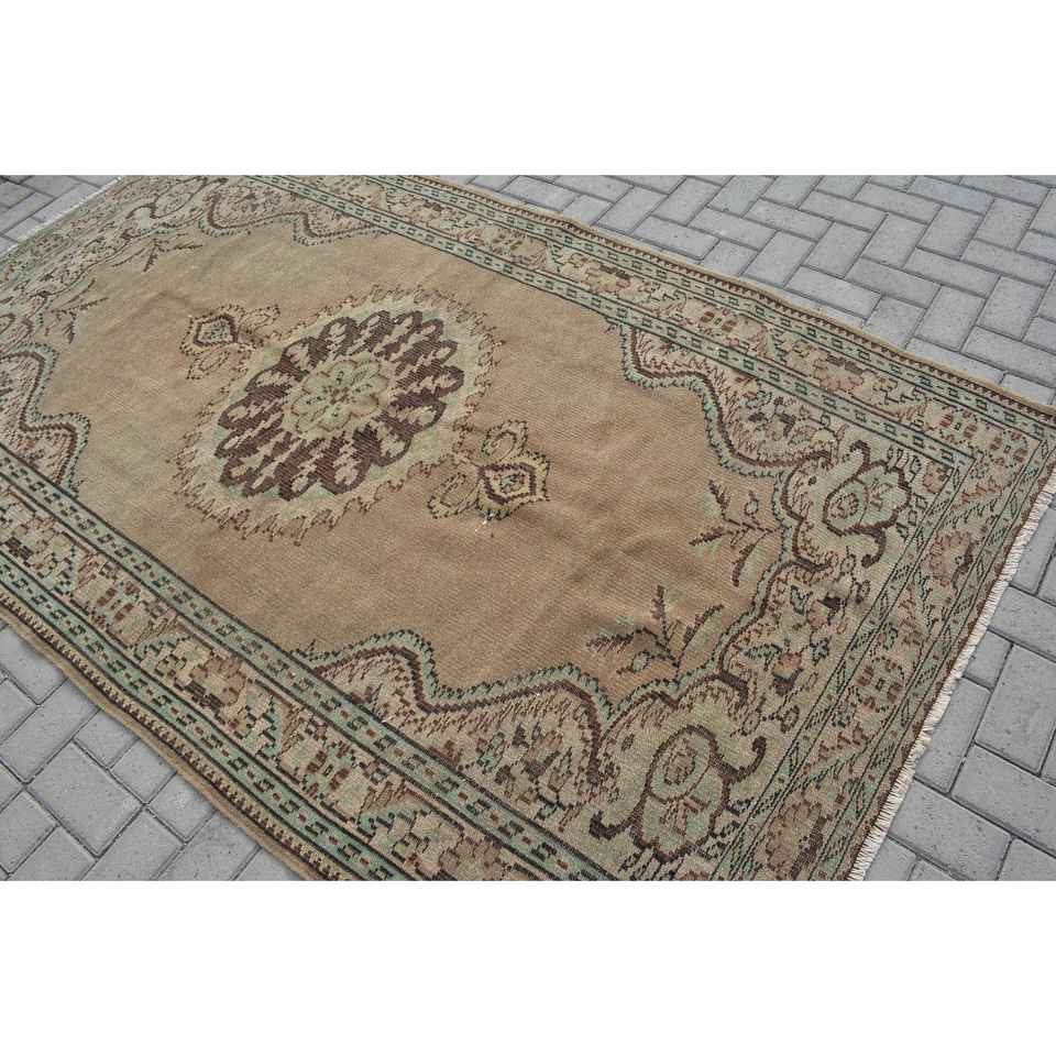 4.9x8.5 ft Turkish Rug, Brown Abstract Vintage Wool Rug