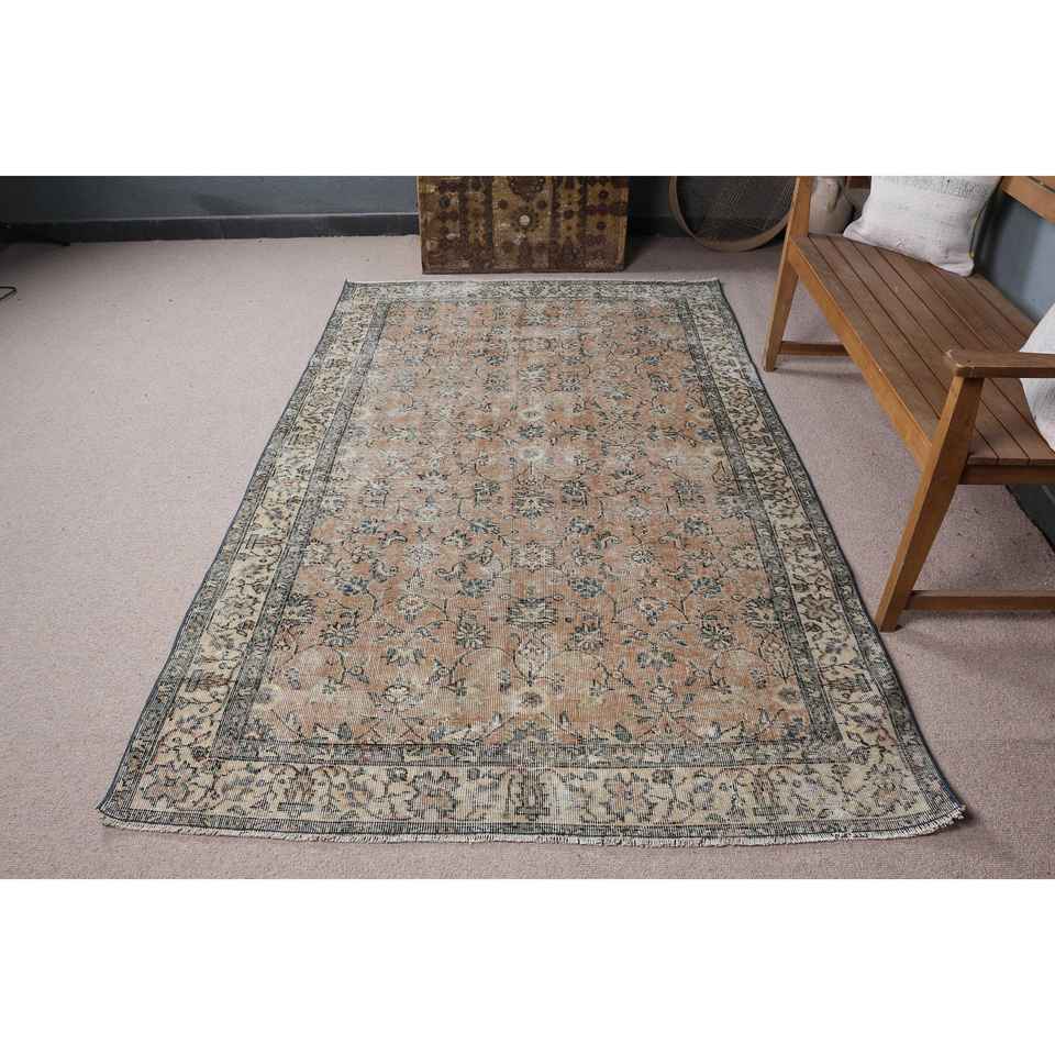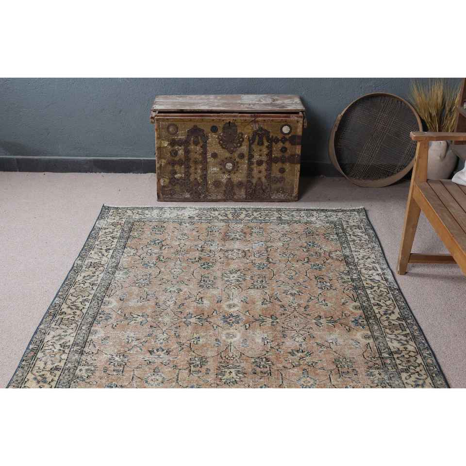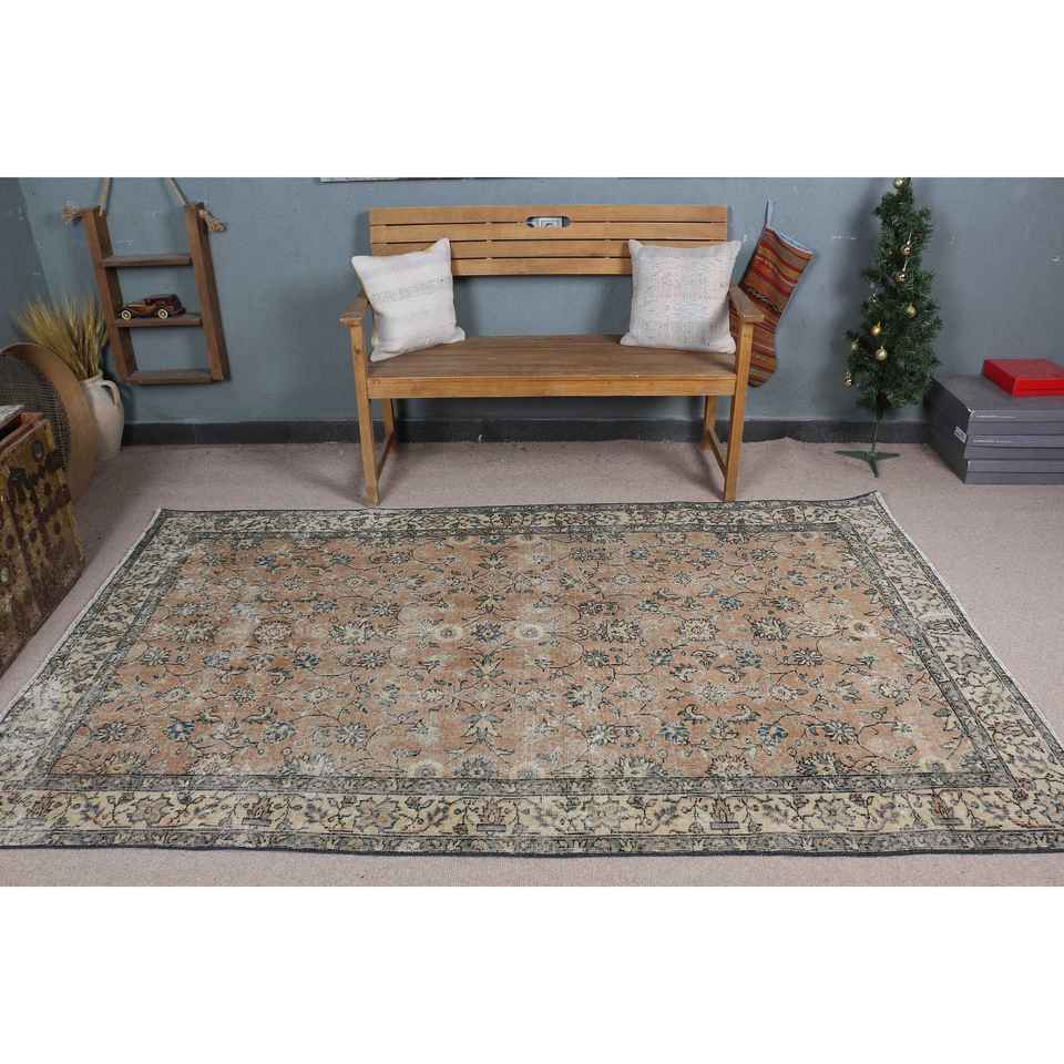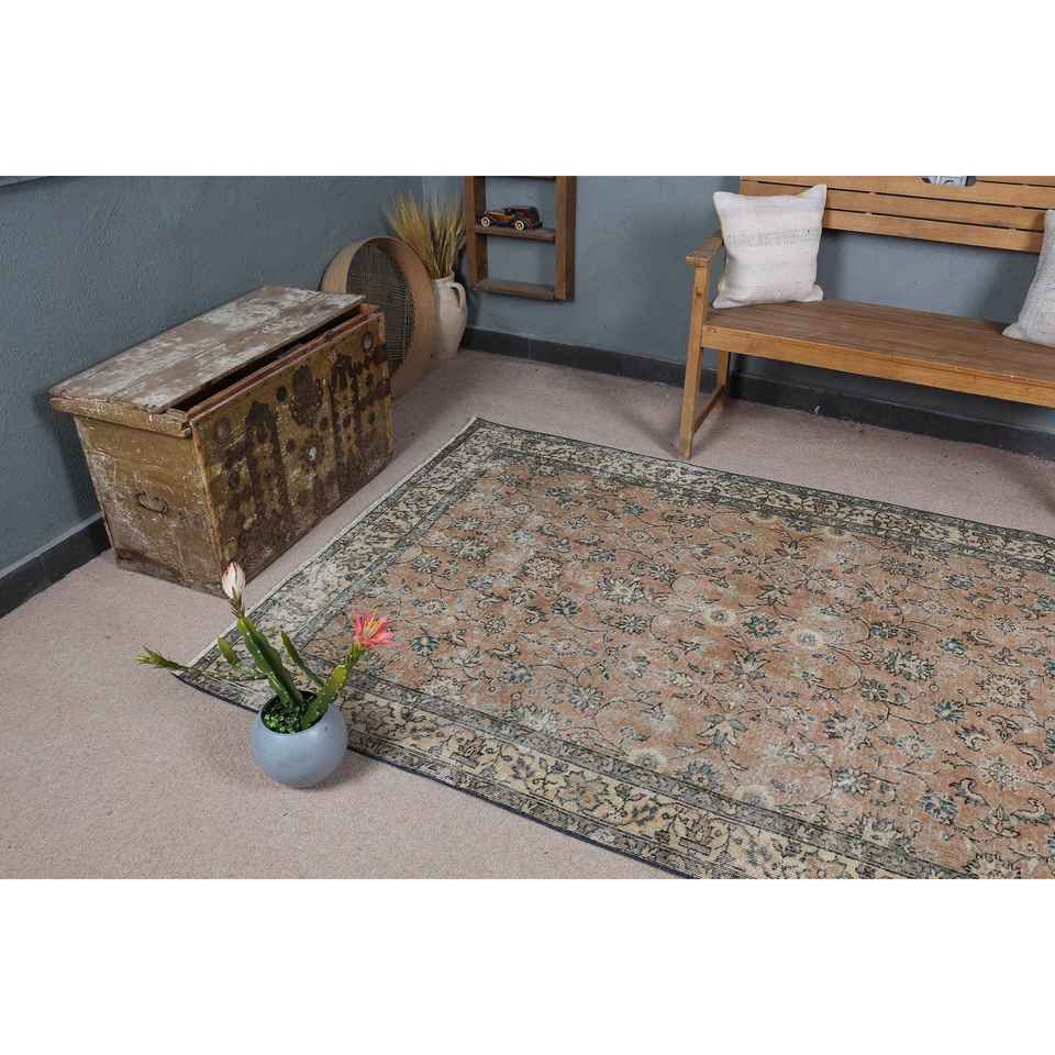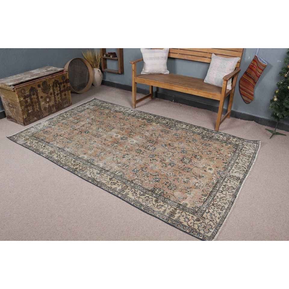 4.9x8 ft Turkish Area Rug, Vintage Brown Polka dot Rug