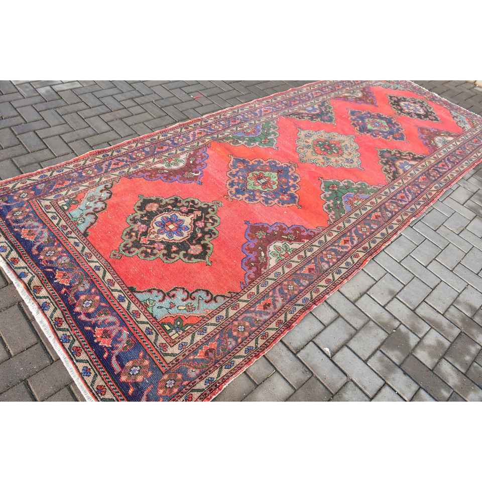 4.9x9.2 ft Turkish Rug, Vintage Large Rug, Red Ikat Wool Rug