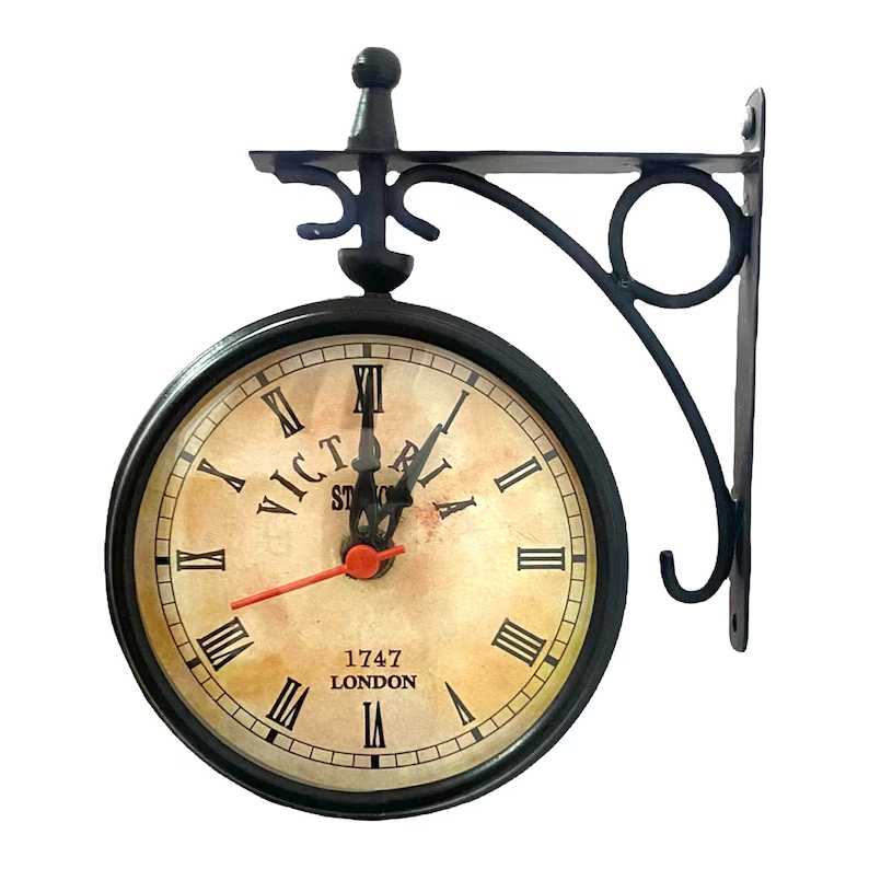 4" Black Victoria Station Double Sided Railway Clock Wall Hanging Clock Wall Double Sided Clock by Calvin handicraft