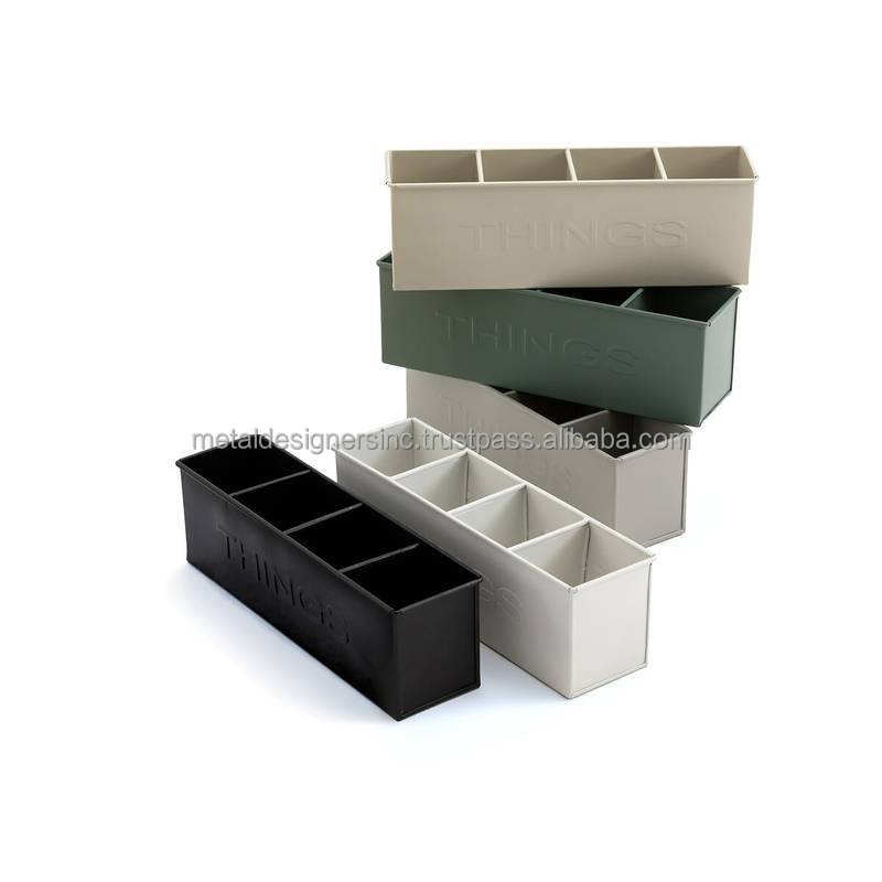 4-Compartment Pencil Tin Galvanized Metal in Multiple Finishing, Galvanised Tableware and Office Use Caddy