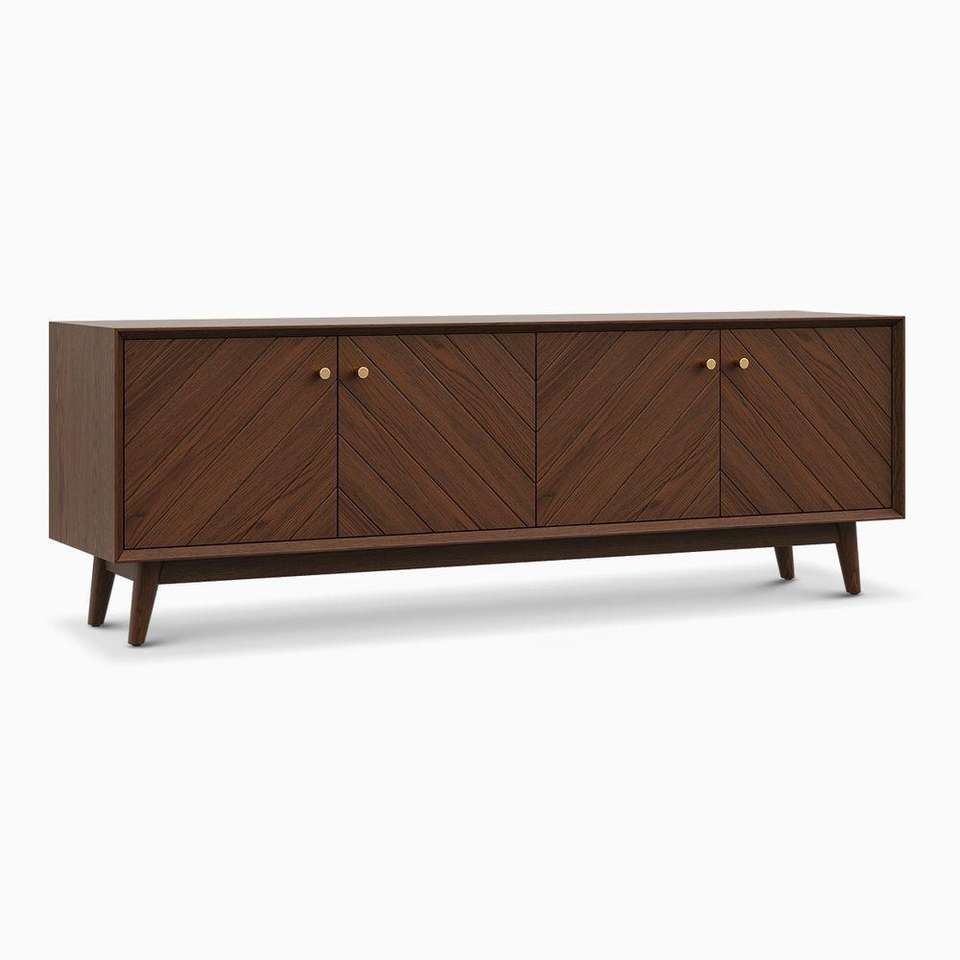 4 Door Modern Farmhouse Handmade Solid Wood Entertainment Center Adjustable Shelves for TV Sideboard Dining Hotel Use Home