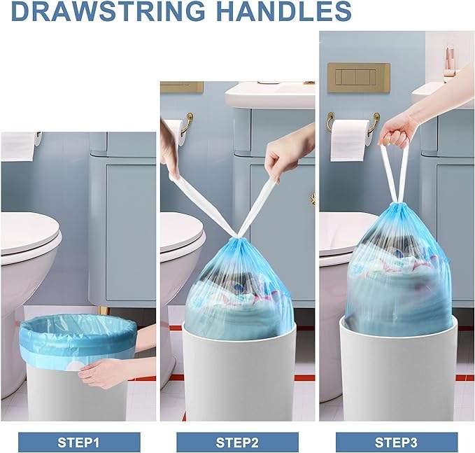 4 Gallon Trash Bags Drawstring Strong Small Garbage Bags, Unscented Trash Can Liners for Bathroom Restroom Office Kitchen, Blue