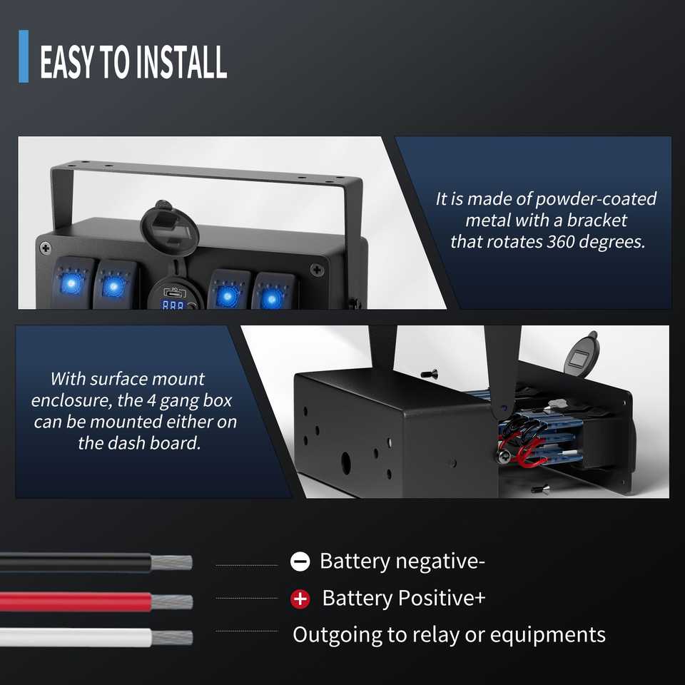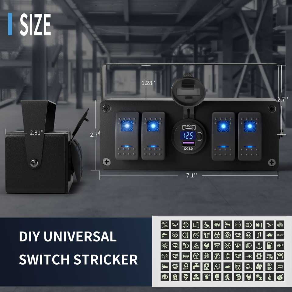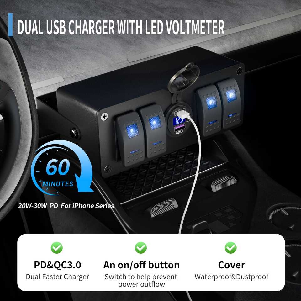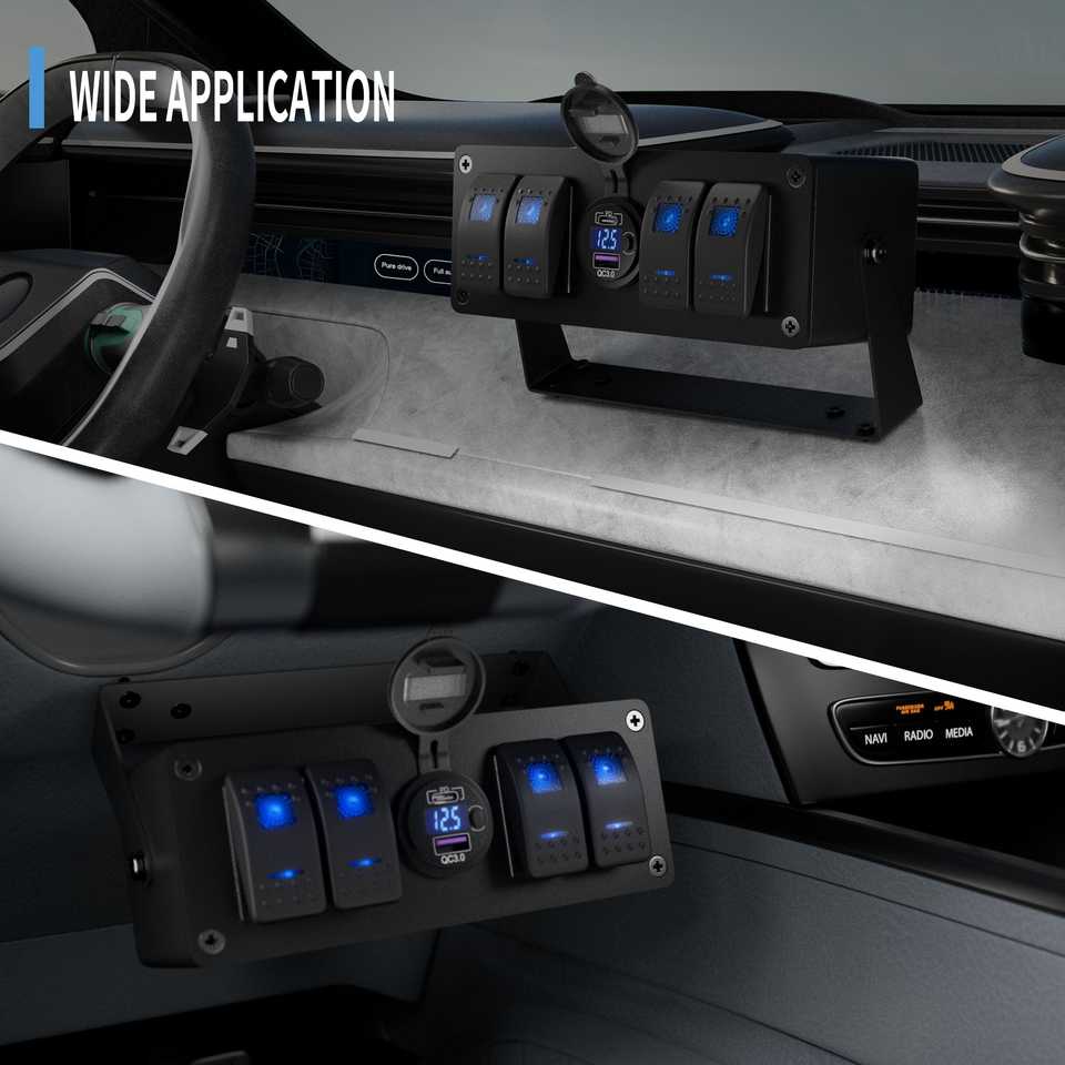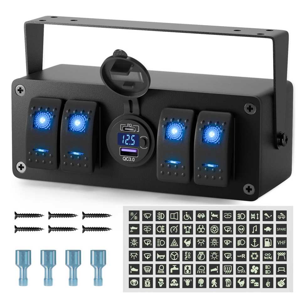 4 Gang Rocker Switch Box Dual USB Charger QC3.0 Voltmeter Blue LED Car Dashboard Panel Auto Switches