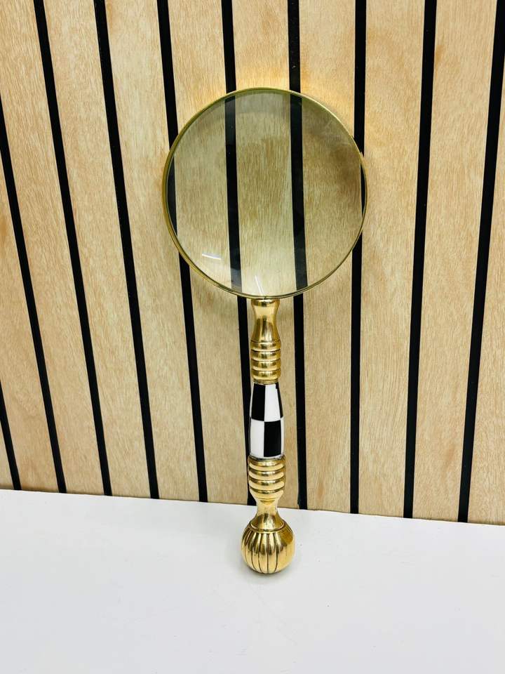 4'' Handheld Brass Magnifying Glass with Decorative Inlay Handle