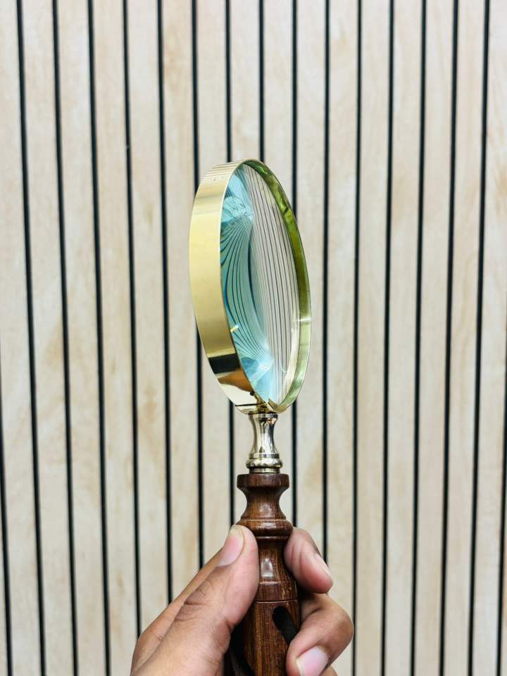 4'' Handheld Magnifying Glass with Polished Wooden Handle & Brass Frame | Optical Glass Reading Magnifier (Non-Folding)