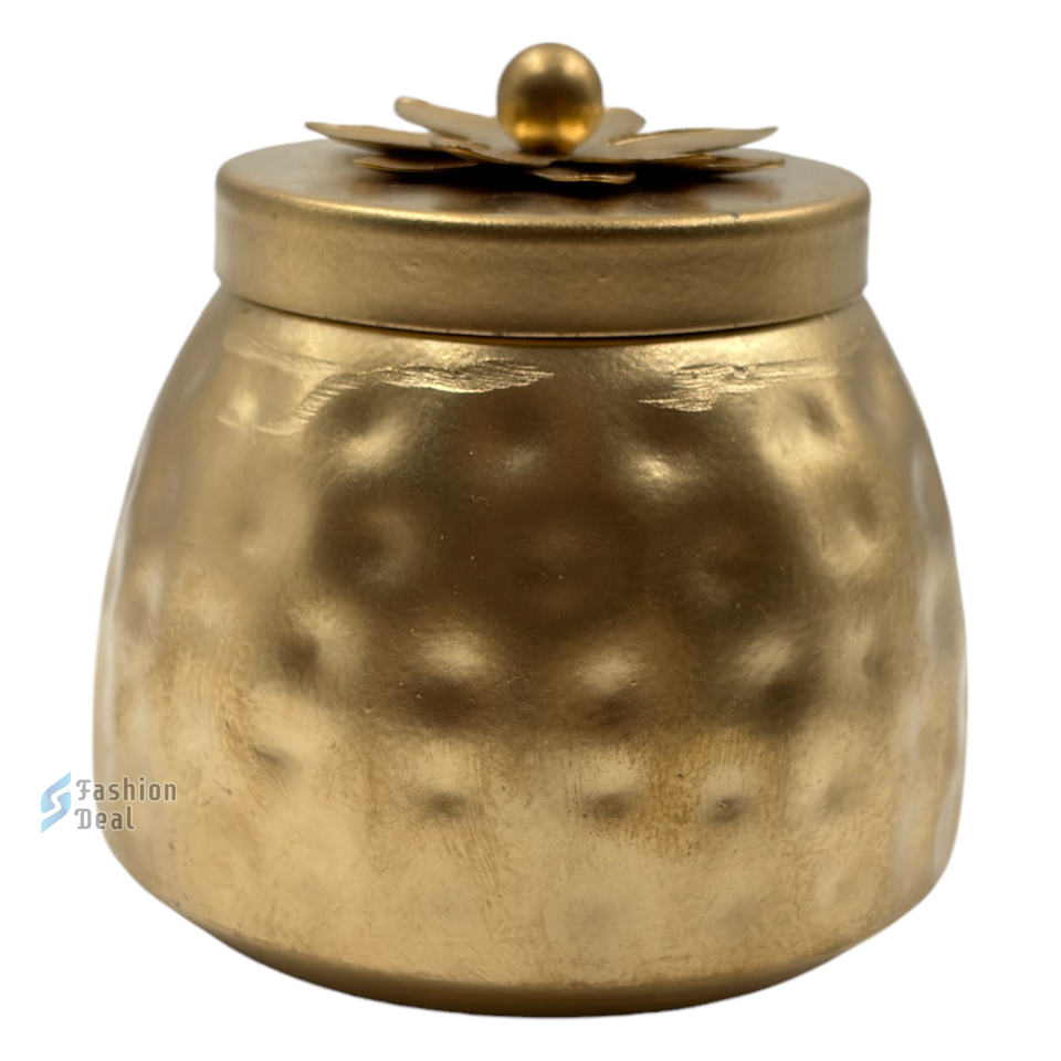 4 Inch Hammered Style Metal Dry Fruit Jar Box Lid Great for Kitchen Food Storage & Return Gifts Printed for Every Occasion