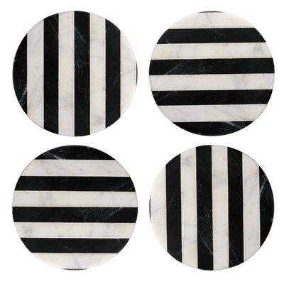 4 Inch Natural Marble Coasters Non-Slip Stone Drink Table Accessories for Kitchen Office & Luxury Home Decor Gift Idea