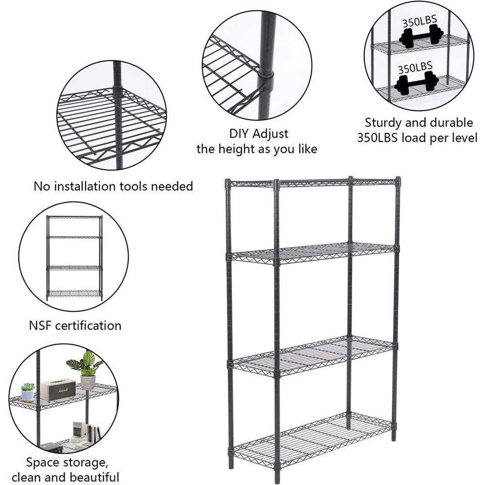 4-Layer Adjustable Utility Storage Rack with Black Anti-Rust Coating Ideal for Pantry/Laundry Room Organization
