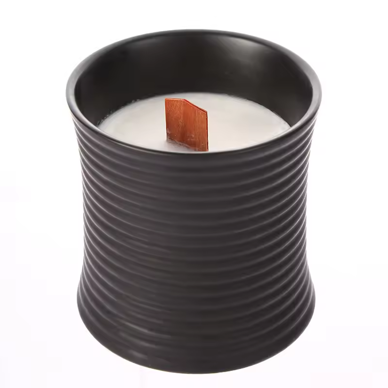 4 Oz Luxury Dark Heavy Green Posh Ceramic Ribbed Candle Jars Embossed Candle Vessels Wholesale