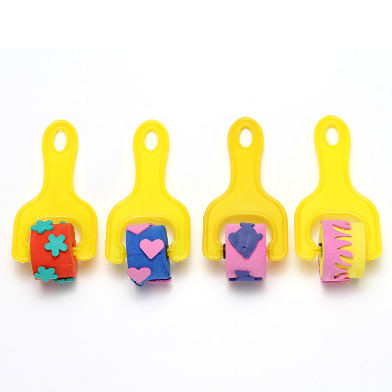 4 PCS High Quality Professional Sponge Painting Brush Set School Wood DIY Roller Stamp Brush EVA Roller Painting Brush Sets