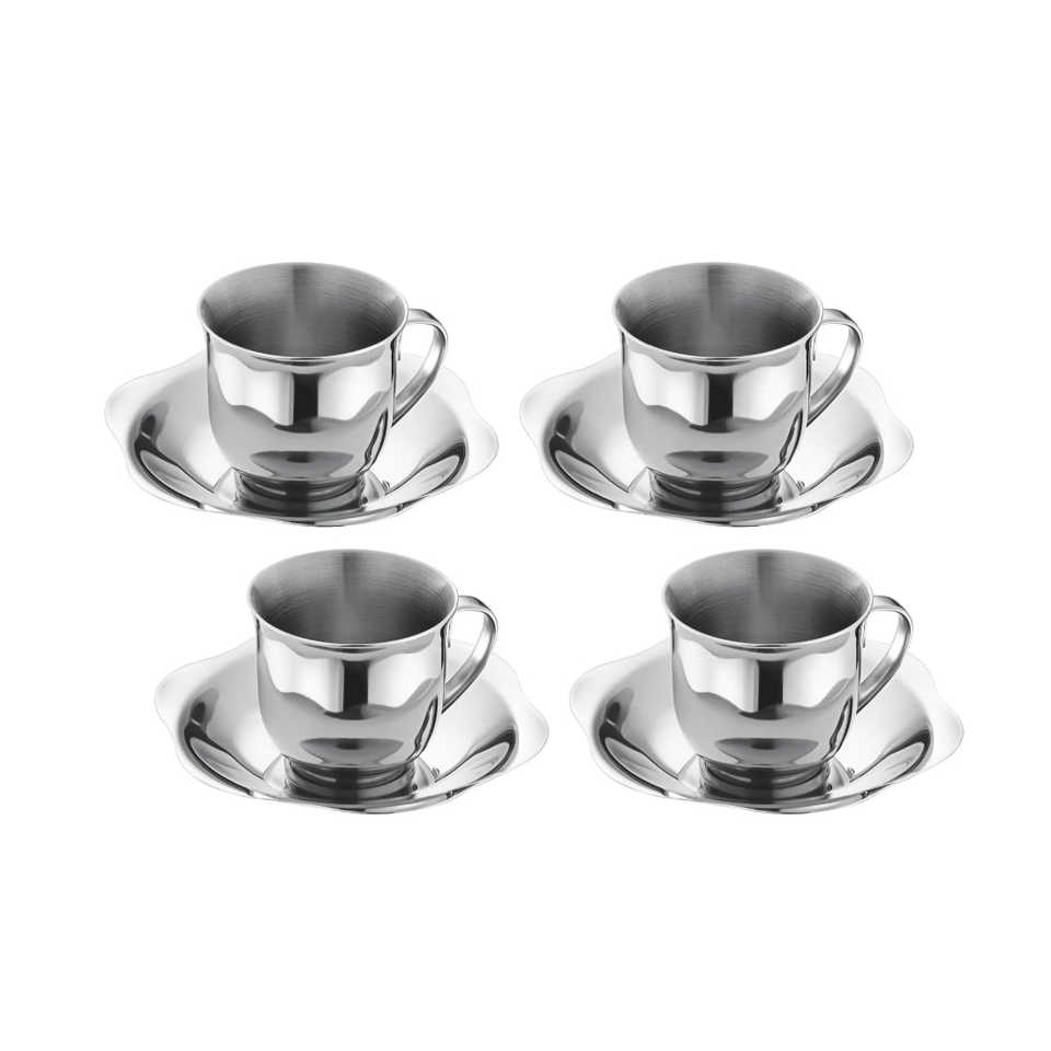 4 PCS Stainless Steel Double Wall Daisy Drink Cup and Saucer Set Premium Tableware for Coffee Tea or Beverages
