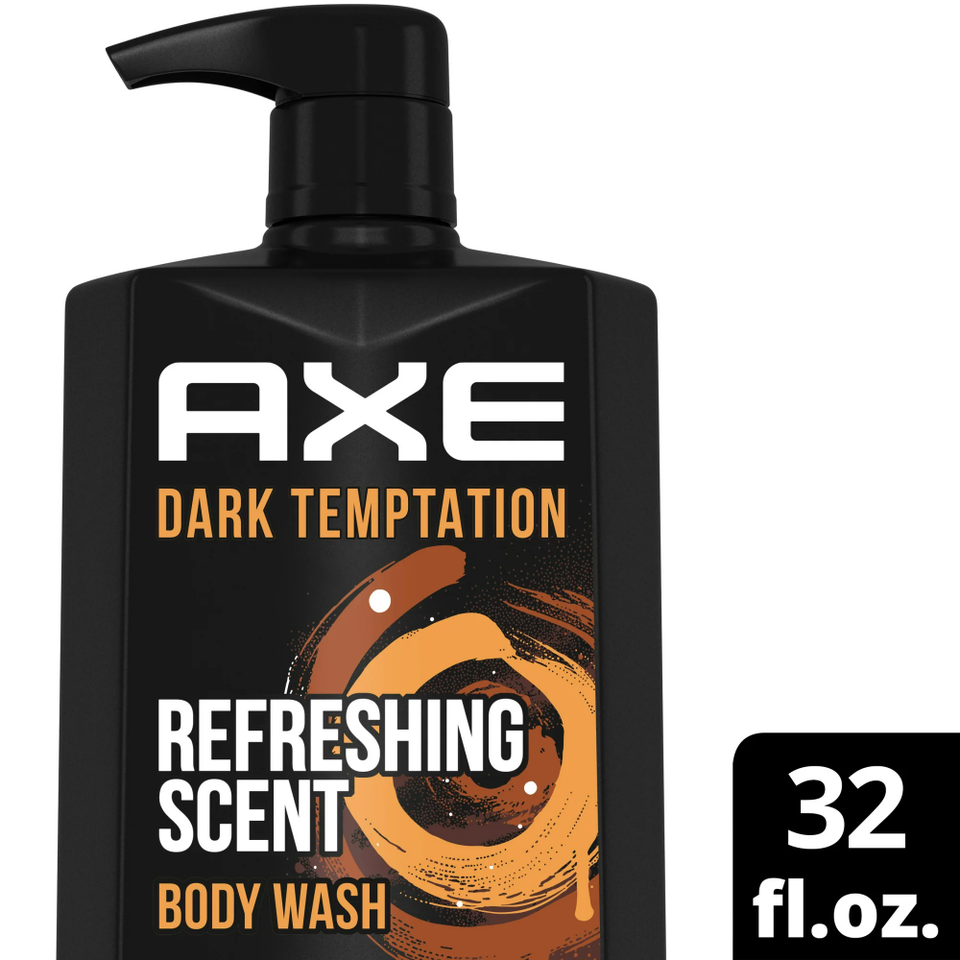 (4 Pack) Axe Dark Temptation Refreshing Long Lasting Men's Perfumed Gel Body Wash Anti-Acne Moisturizing Dark Chocolate Scent 32