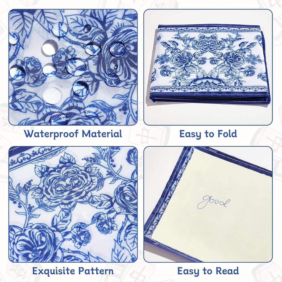 4 Pack Chinoiserie Mahjong Card Holder Fabric Plastic Soft Scorecard Cover Mahjongg Card Protector Set Table Runners Gifts Made