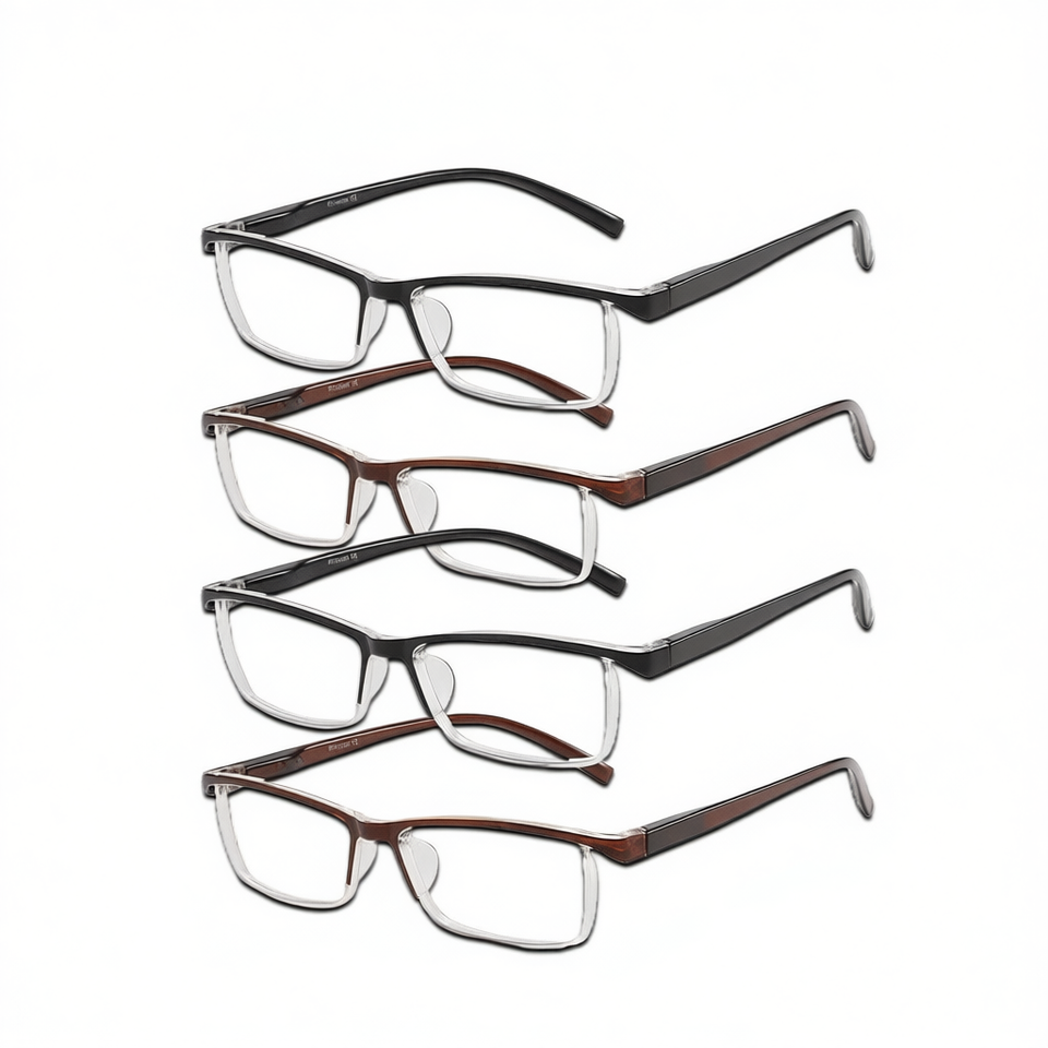 Unisex Square Reading Glasses 4 Pack Spring Hinge Multi Color Transparent Lenses For Men Women