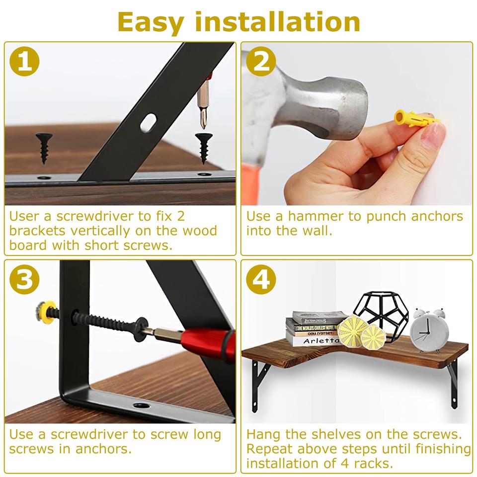 4-Packs Wood Metal Corner Floating Shelf Wall Mount Display Storage Organizer for Bedroom Living Room Elegant Display Shelves