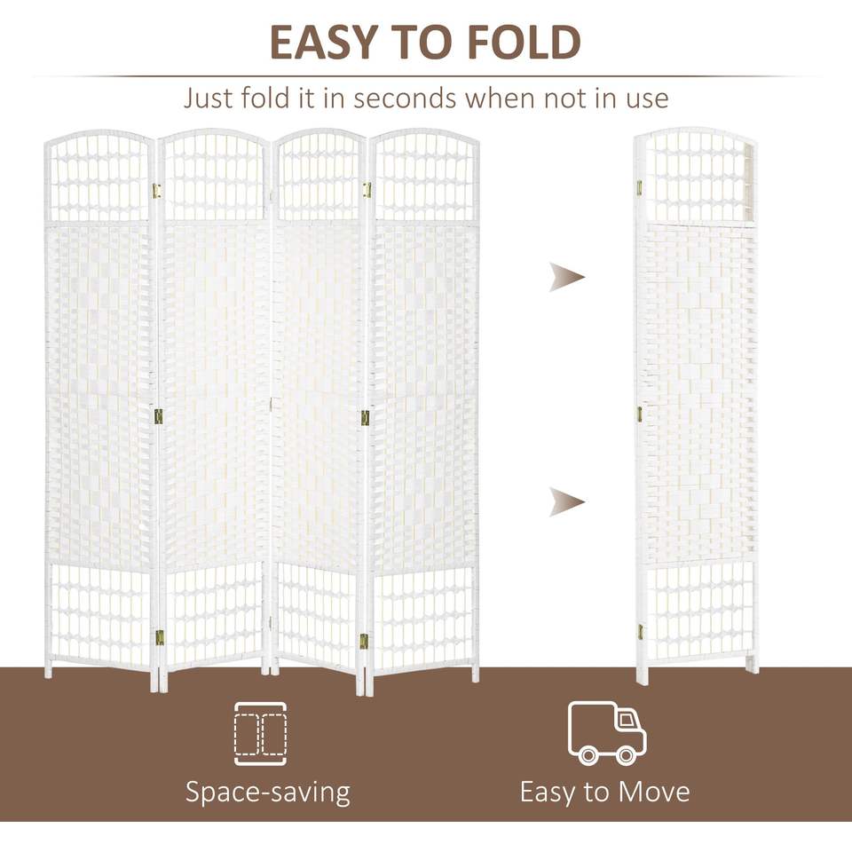 4-Panel White Wave Fiber Folding Privacy Screen, Freestanding Room Divider for Home Office