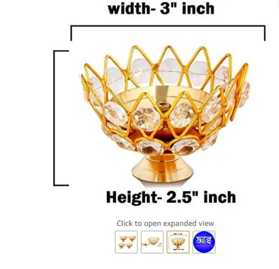 4 Pcs Metal Pooja Accessories Crystal Floral Tea Light Holder Decor Decorative Diyas Deepak for Temple