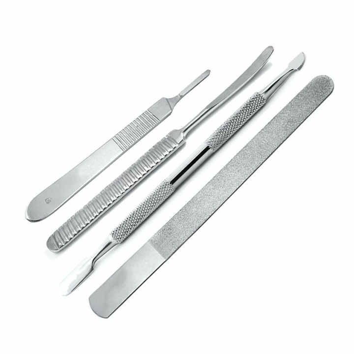 4 Pcs Nail Flicking Elevators, Cuticle Pusher, Deb File, Scalpel Handle - Stainless Steel Beauty Tools For Precise Foot Care