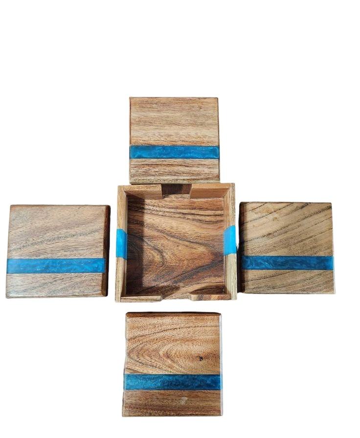 4 Pcs Resin and Wood Custom Design Best Coasters with Holder for Drink Coffee Tea for Office & Home for Hot Table Accessories