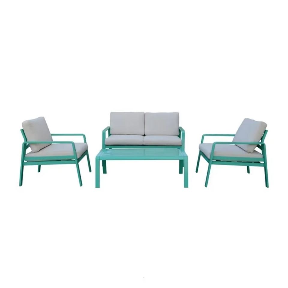 4-Piece Aluminum & Rattan Conversation Sofa Set for Outdoor Garden Patio & Backyard Weather Resistant Exterior Furniture