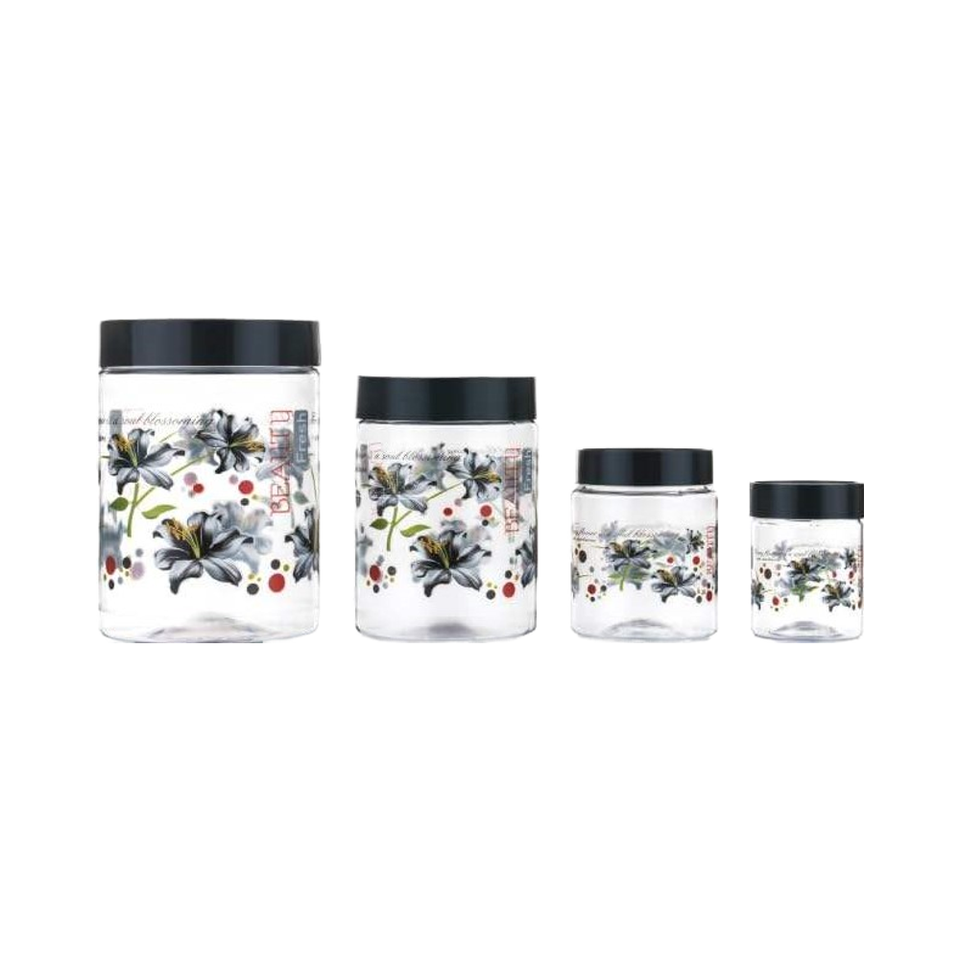 4-Piece Black Transparent Airtight Plastic Dishwasher Safe Eco-Friendly Flower Jars Zipper Lid Large Capacity Food Storage for