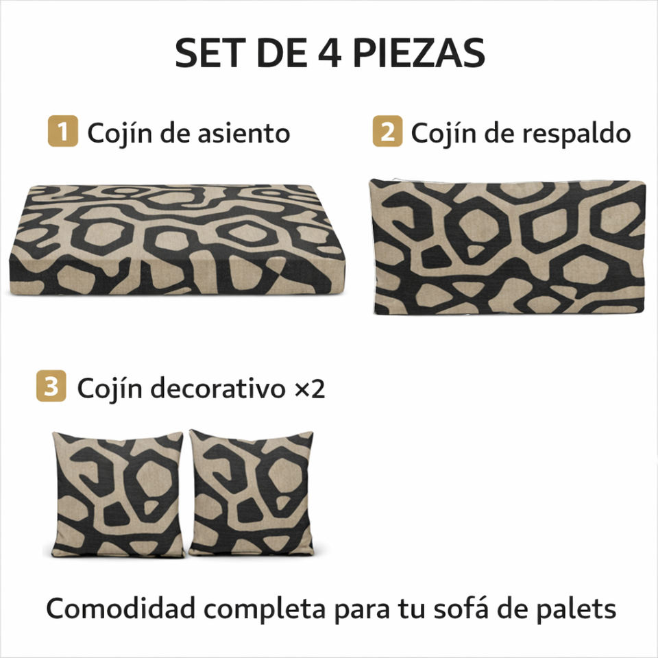 4-Piece Durable Fabric Outdoor Pallet Cushion Set 120x80 + 120x50 cm Patio Bench 12 cm Thick Removable Cover Industrial Design